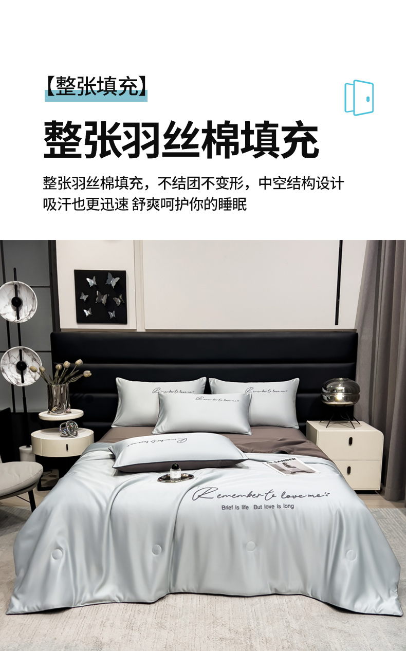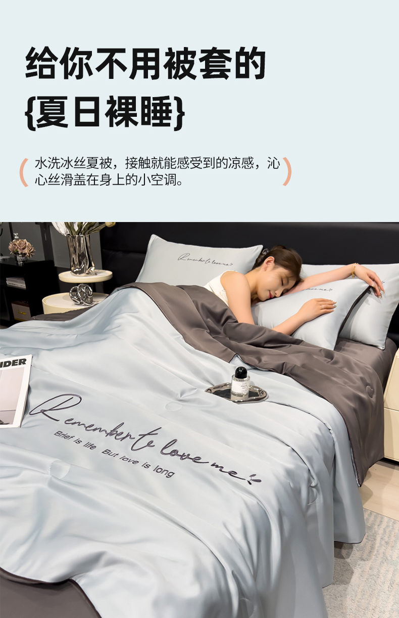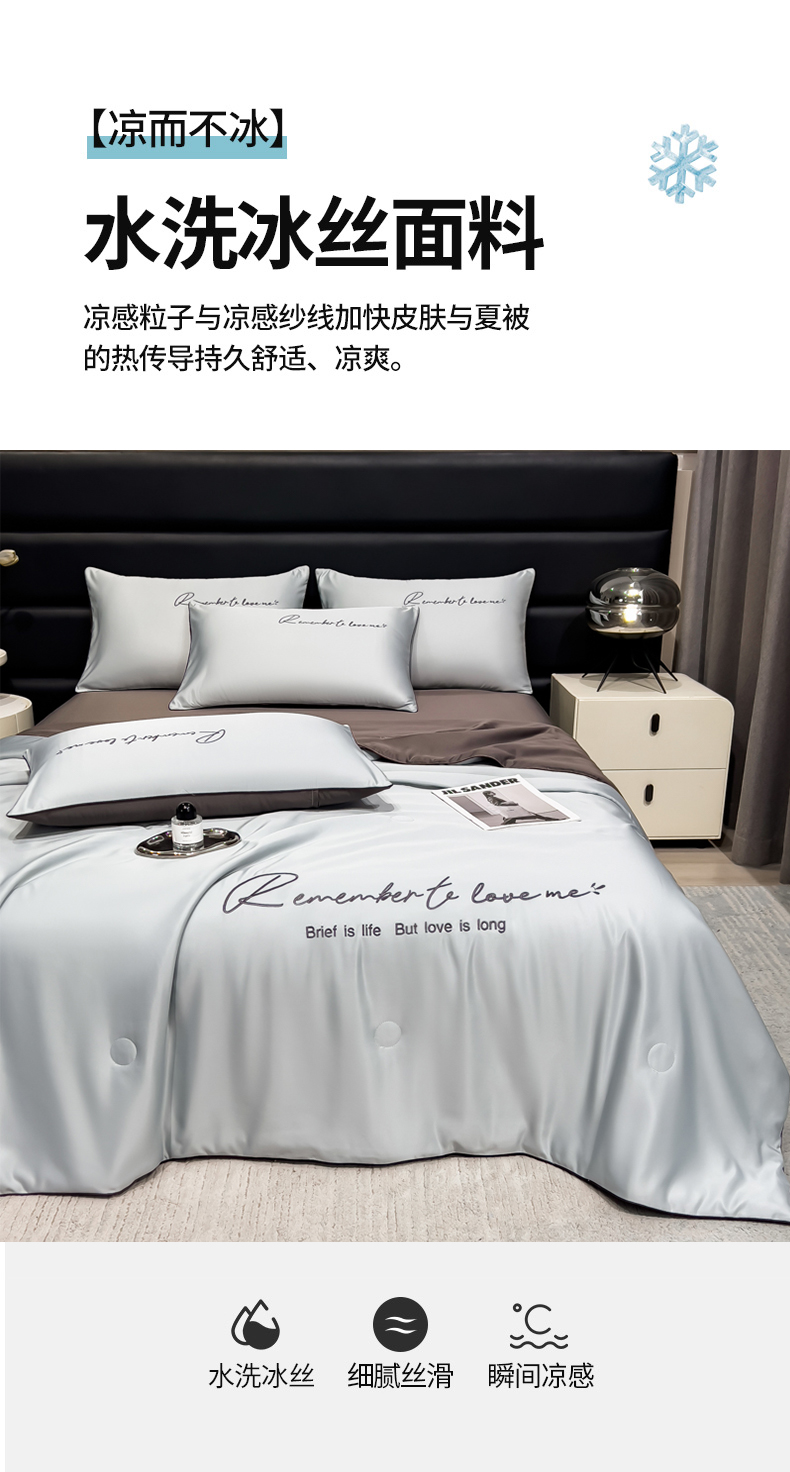 云恋家纺 2026新款轻奢高级感水洗冰丝刺绣夏凉被凉感可裸睡空调被四件套学生薄款被-一生所爱系列 一生所爱-银灰+绅士灰