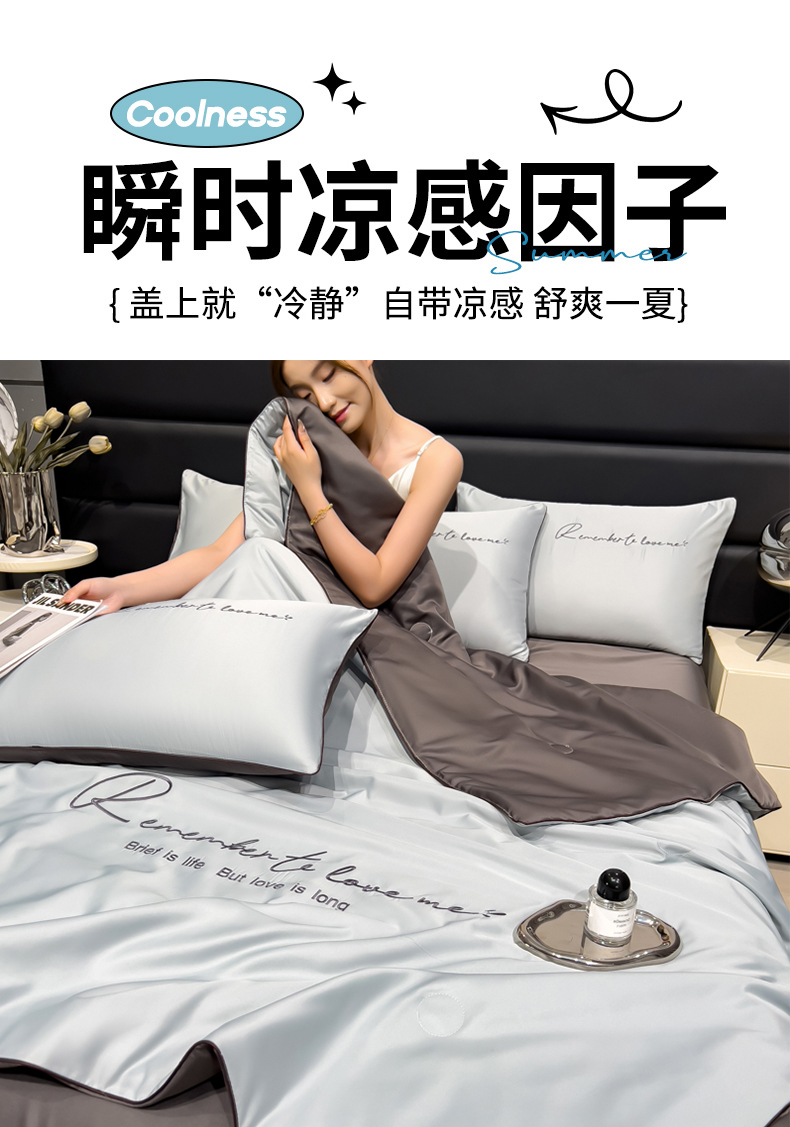 当前位置: 91家纺网 > 商品网购 > 被子 > 夏被 > 云恋家纺 2026新款轻奢高级感水洗冰丝刺绣夏凉被凉感可裸睡空调被四件套学生薄款被-一生所爱系列 一生所爱-银灰+绅士灰
