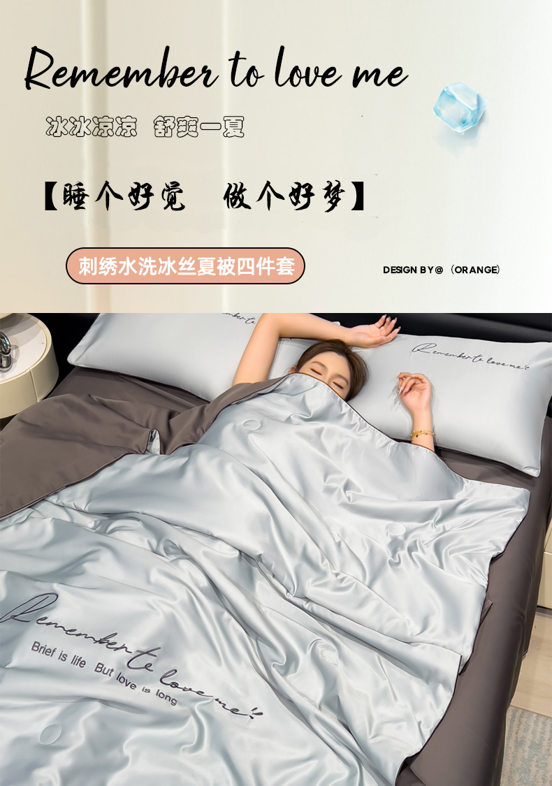 • 91家纺网 家纺一手货源 找家纺 云恋家纺 2026新款轻奢高级感水洗冰丝刺绣夏凉被凉感可裸睡空调被四件套学生薄款被-一生所爱系列 一生所爱-银灰+绅士灰