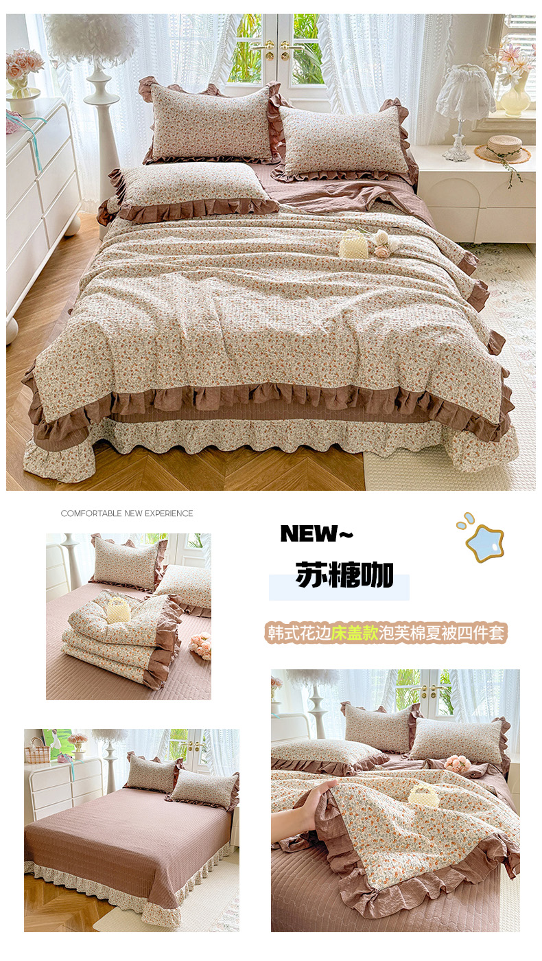 (总)韩约家纺 2026春夏新款韩式花边泡芙棉床单款夏被夏凉被空调被四件套,奶油泡芙,安暖如夏,宝妮,波点红,花春城,马上有钱,苏糖咖,旺旺,微花耳耳,星梦伙伴,星星人,紫色心情