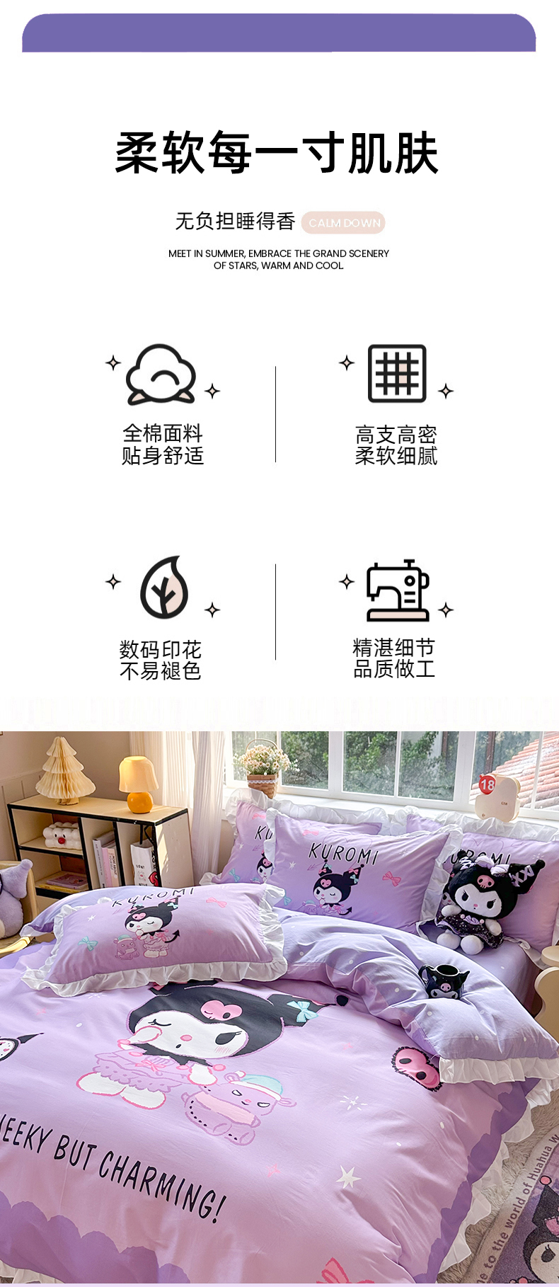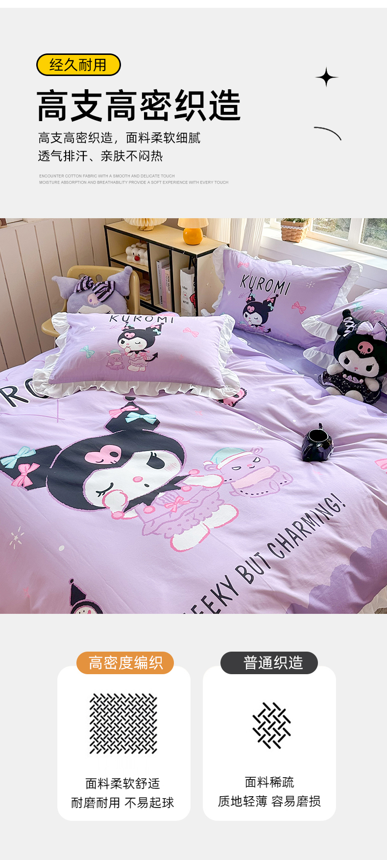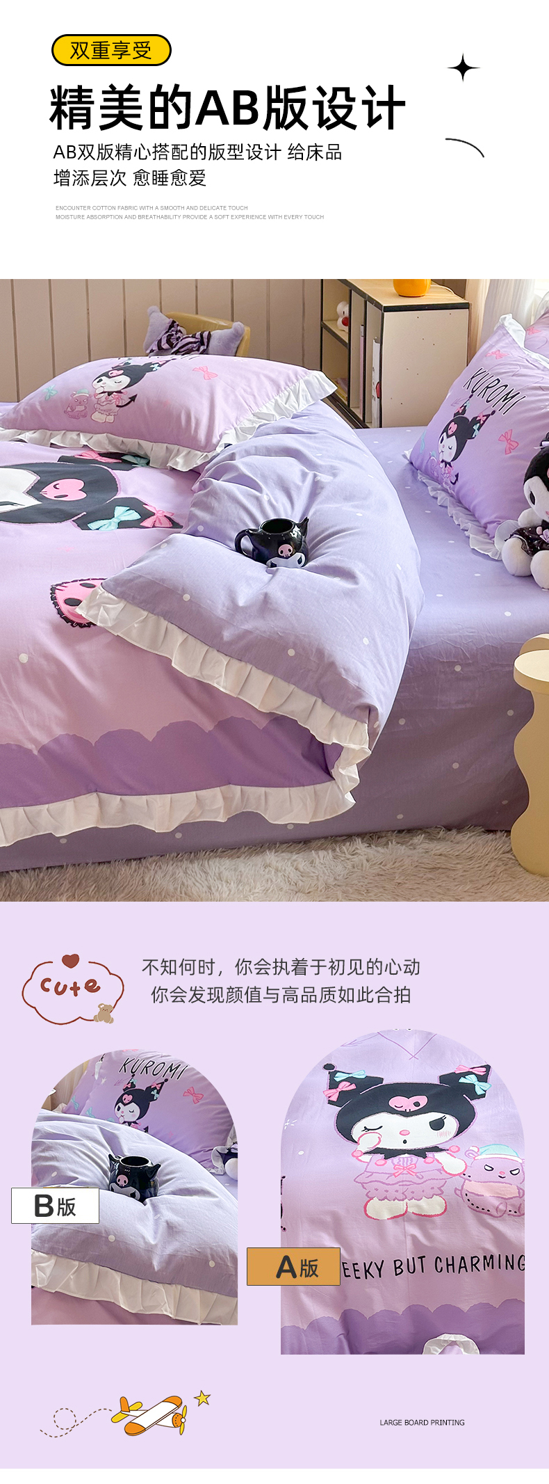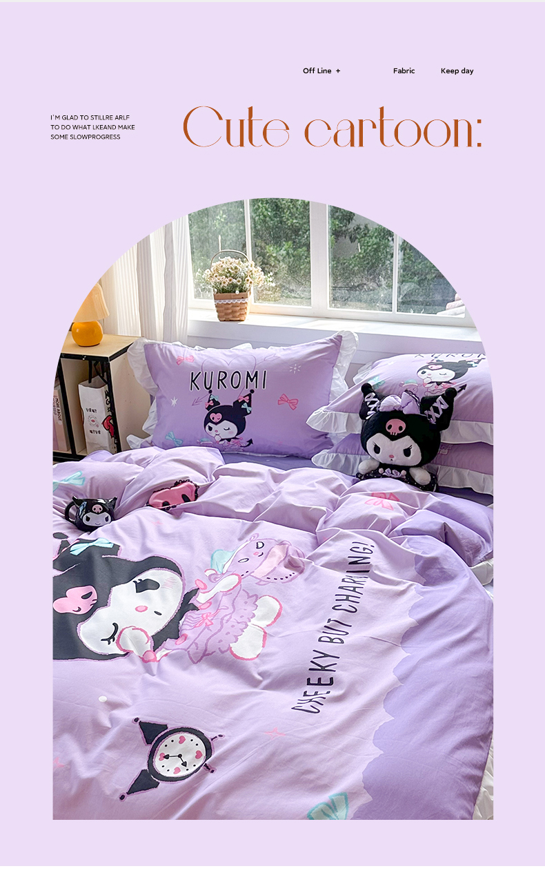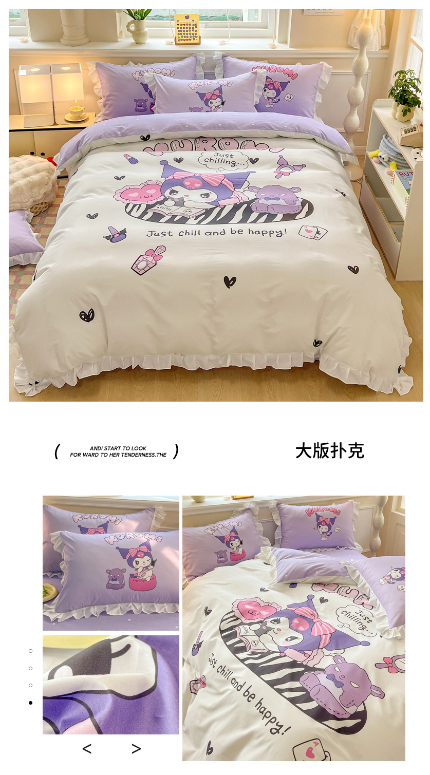(总)玉元坊 2026新款三丽鸥正版授权库洛米儿童卡通全棉纯棉床单床笠床裙花边被套三四件套,库洛米【花边款】,库洛米宝贝【花边款】,库洛米条纹-白花边款,甜甜库洛米【花边款】,樱桃库洛米【花边款】,紫格库洛米-白花边款