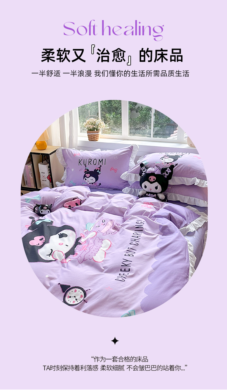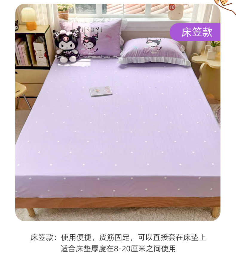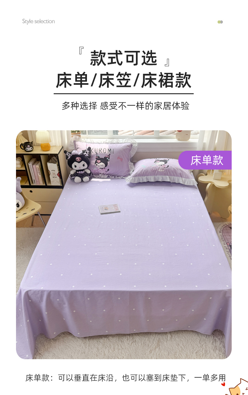 商品名称:(总)玉元坊 2026新款三丽鸥正版授权酷洛米全棉纯棉床单床笠床裙三四件套