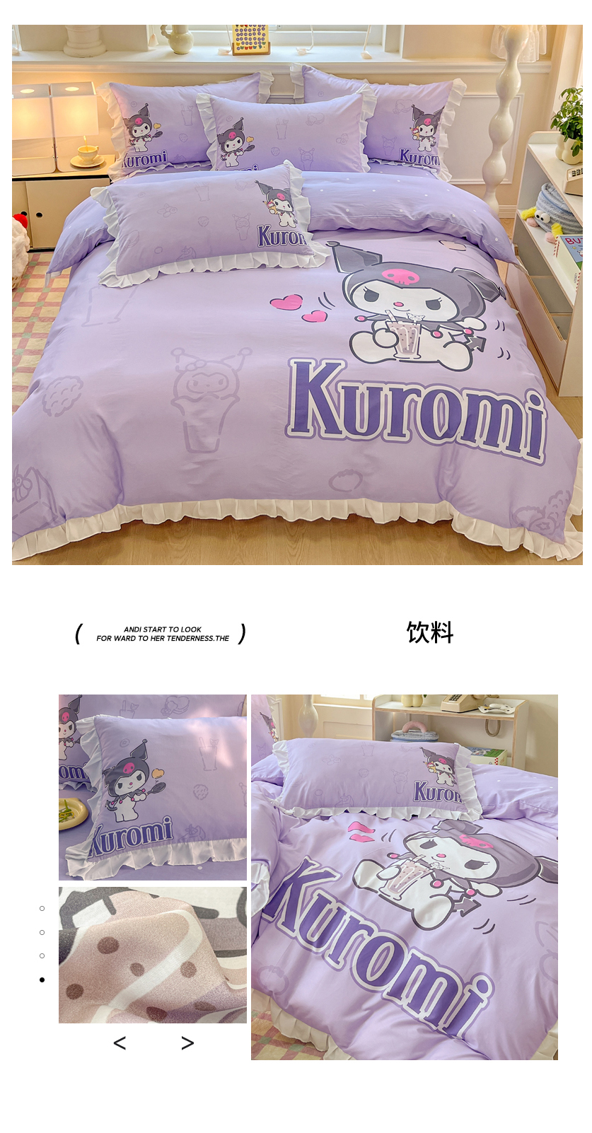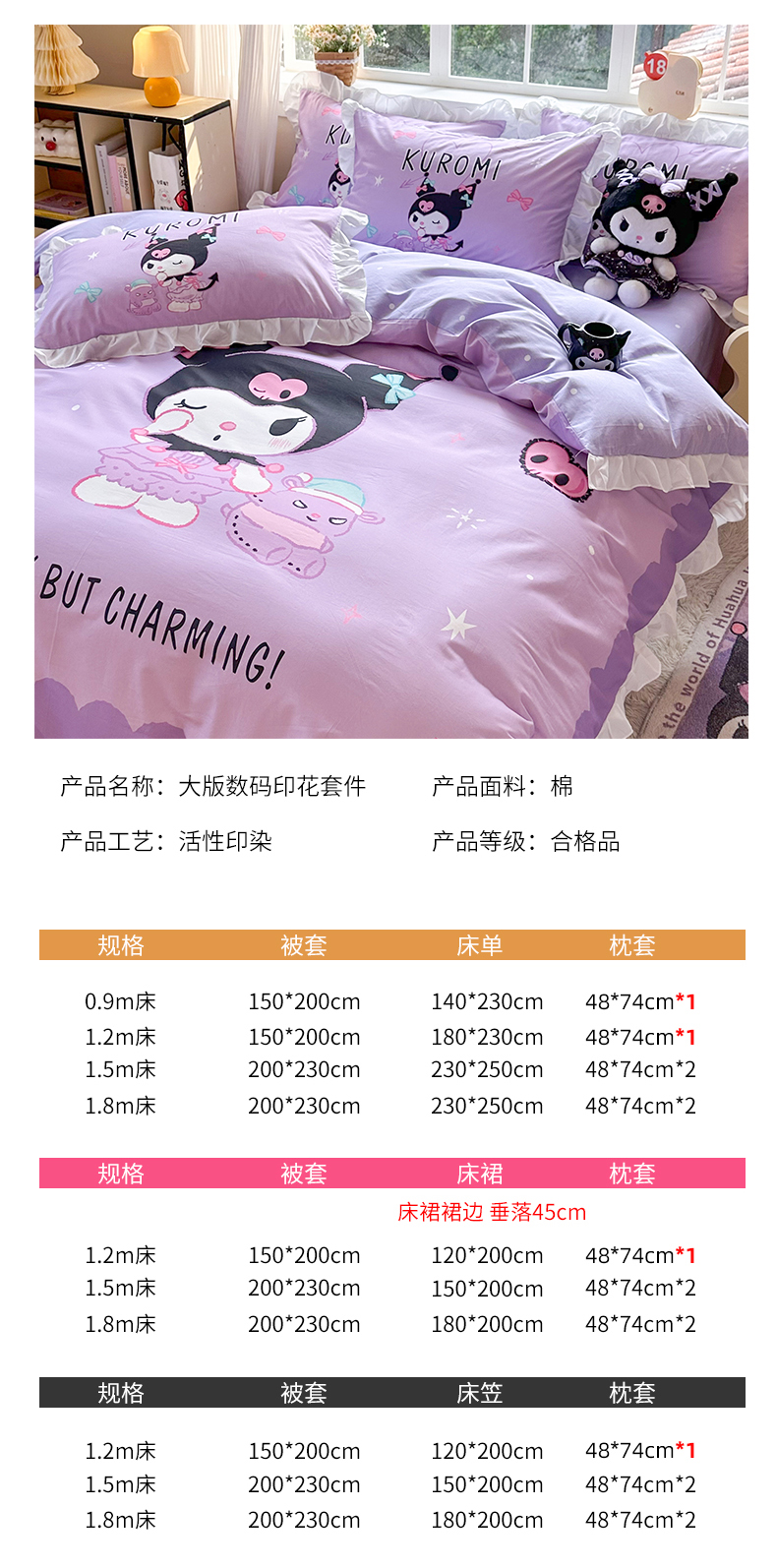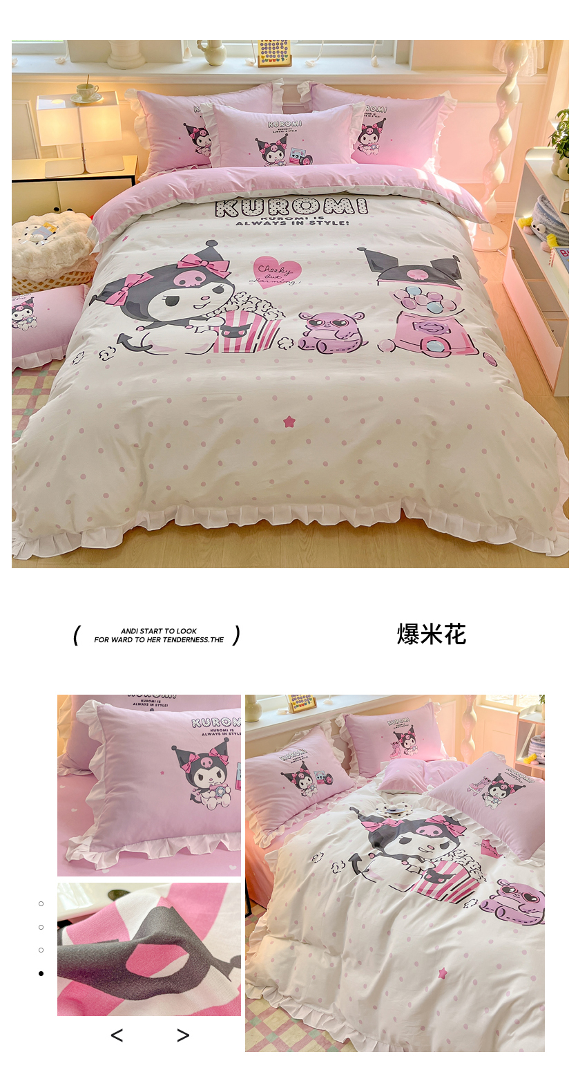 商品名称:(总)玉元坊 2026新款三丽鸥正版授权酷洛米全棉纯棉床单床笠床裙三四件套