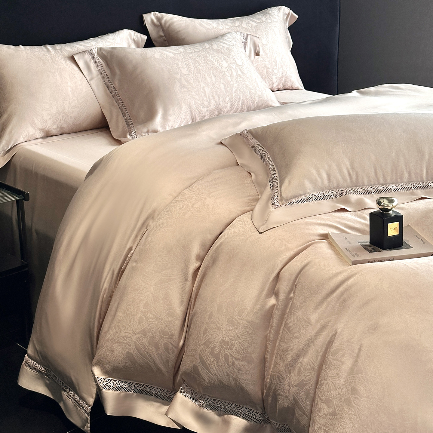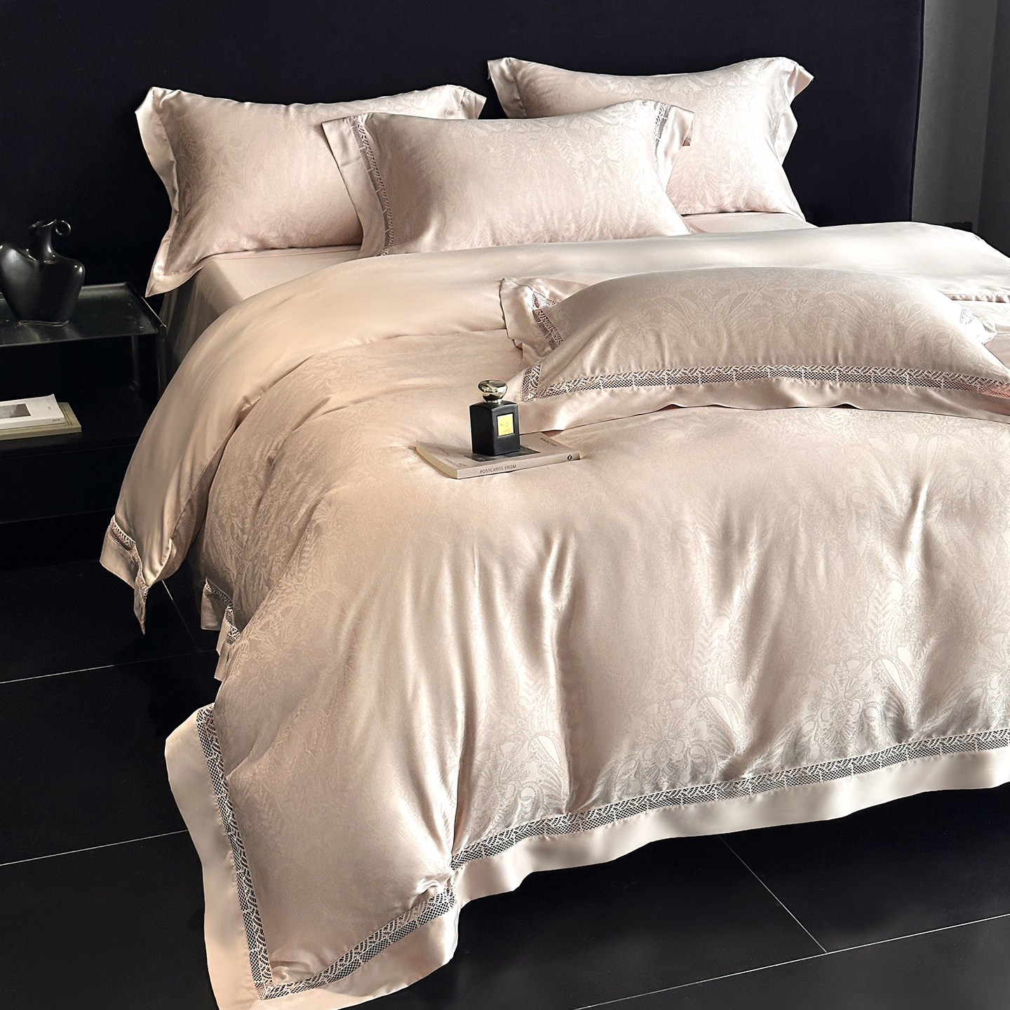 南通朵美纺织品有限公司 2026新款100支天丝镂空提花斐庭系列四件套 斐庭(粉玉)
