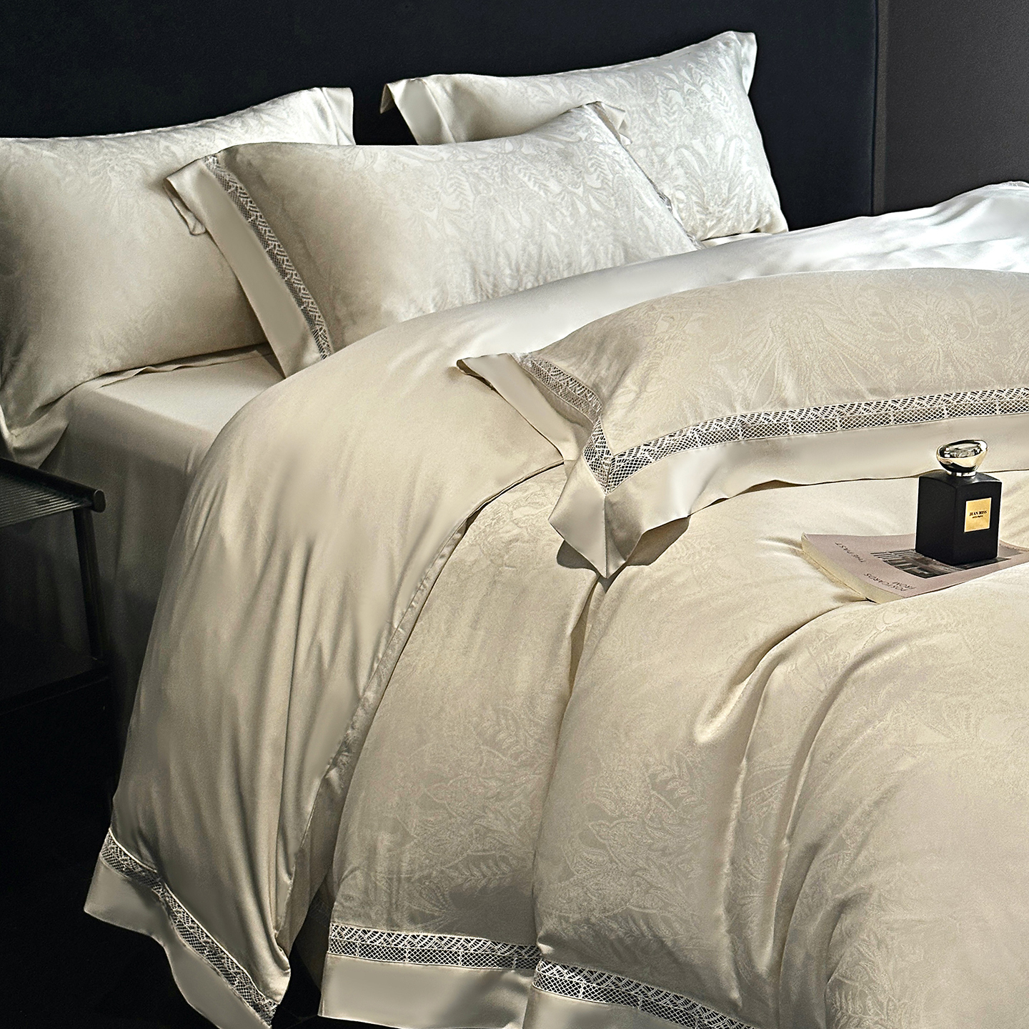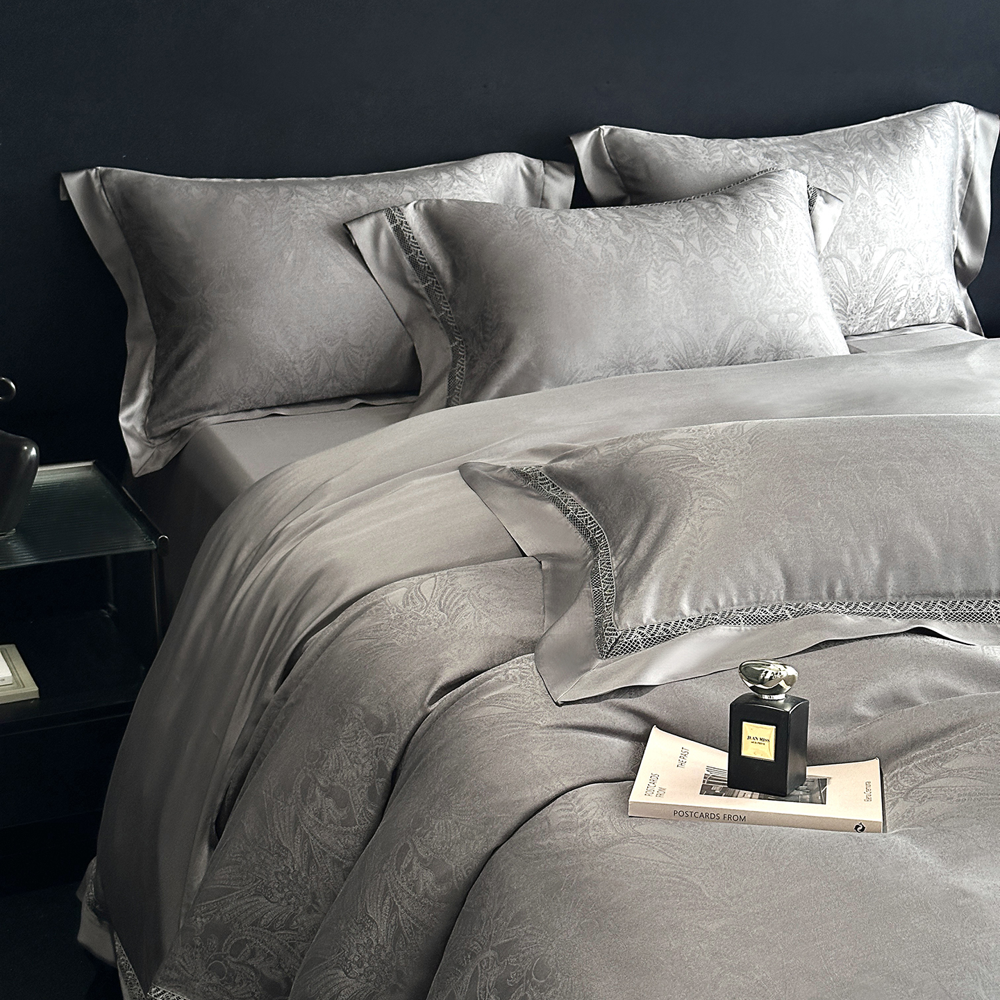 (总)南通朵美纺织品有限公司 2026新款100支天丝镂空提花斐庭系列四件套,斐庭(粉玉),斐庭(黑灰),斐庭(米白),斐庭(浅灰)