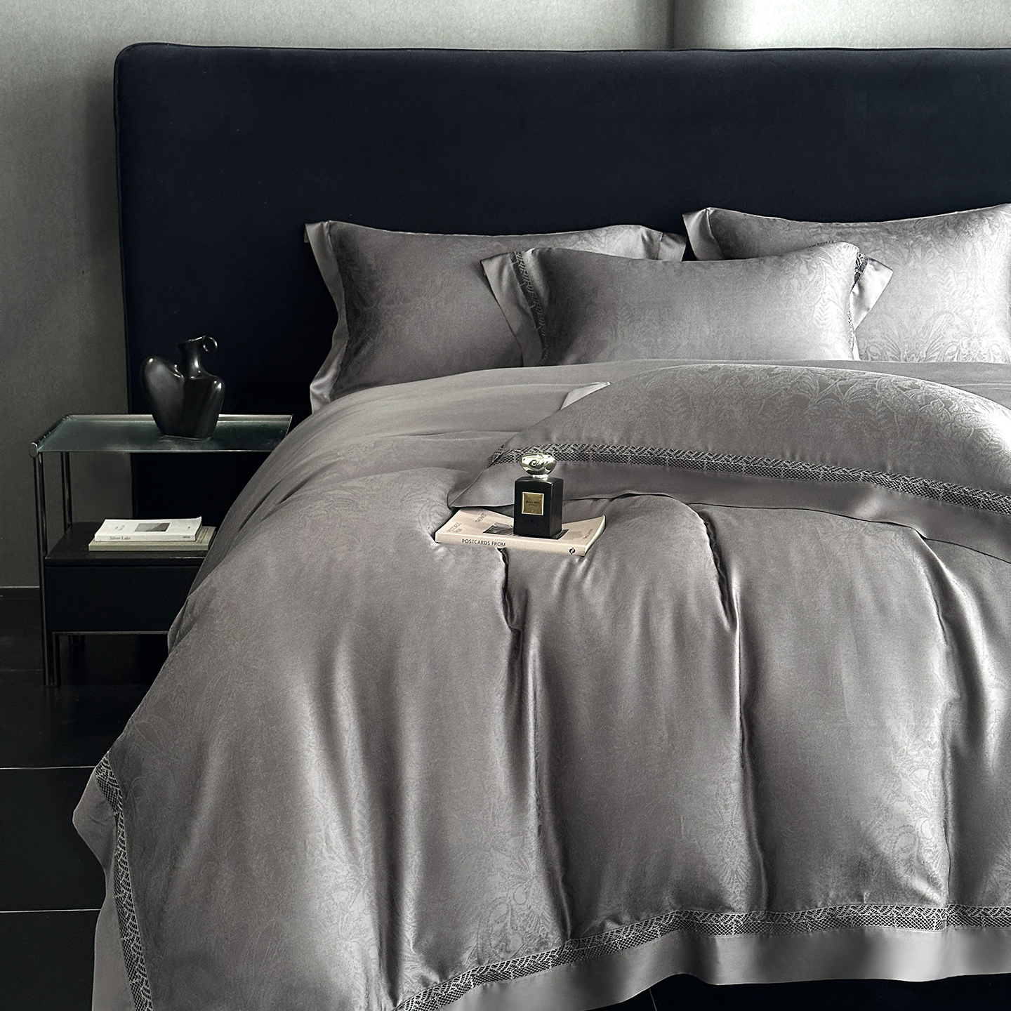 (总)南通朵美纺织品有限公司 2026新款100支天丝镂空提花斐庭系列夏被四件套,斐庭(粉玉),斐庭(黑灰),斐庭(米白),斐庭(浅灰)
