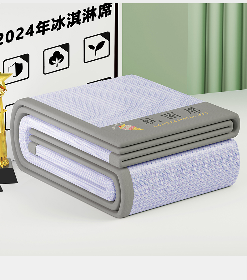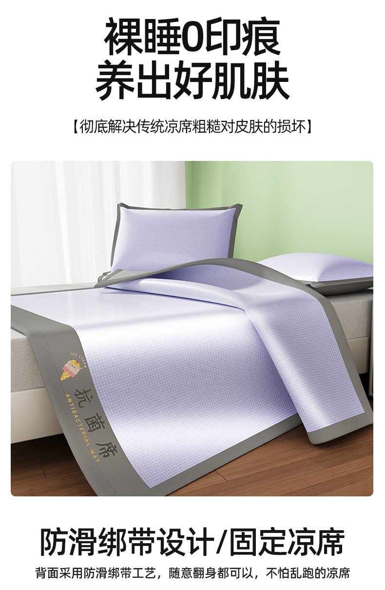 商品名称:色鬼布艺高端家居主号 2026新款抗菌冰激凌色织提花床单款床席冰丝席席子凉席 冰淇淋-梦幻紫