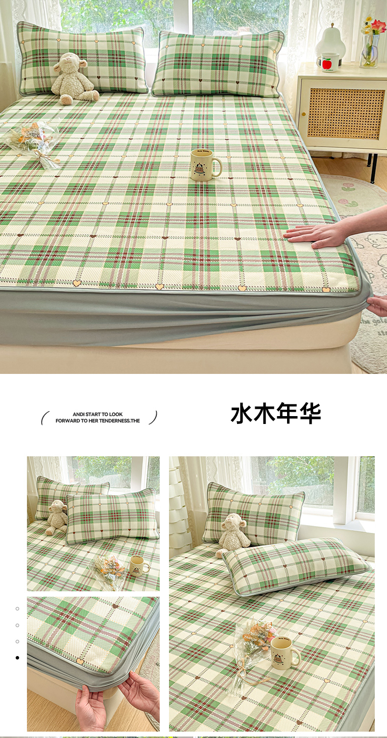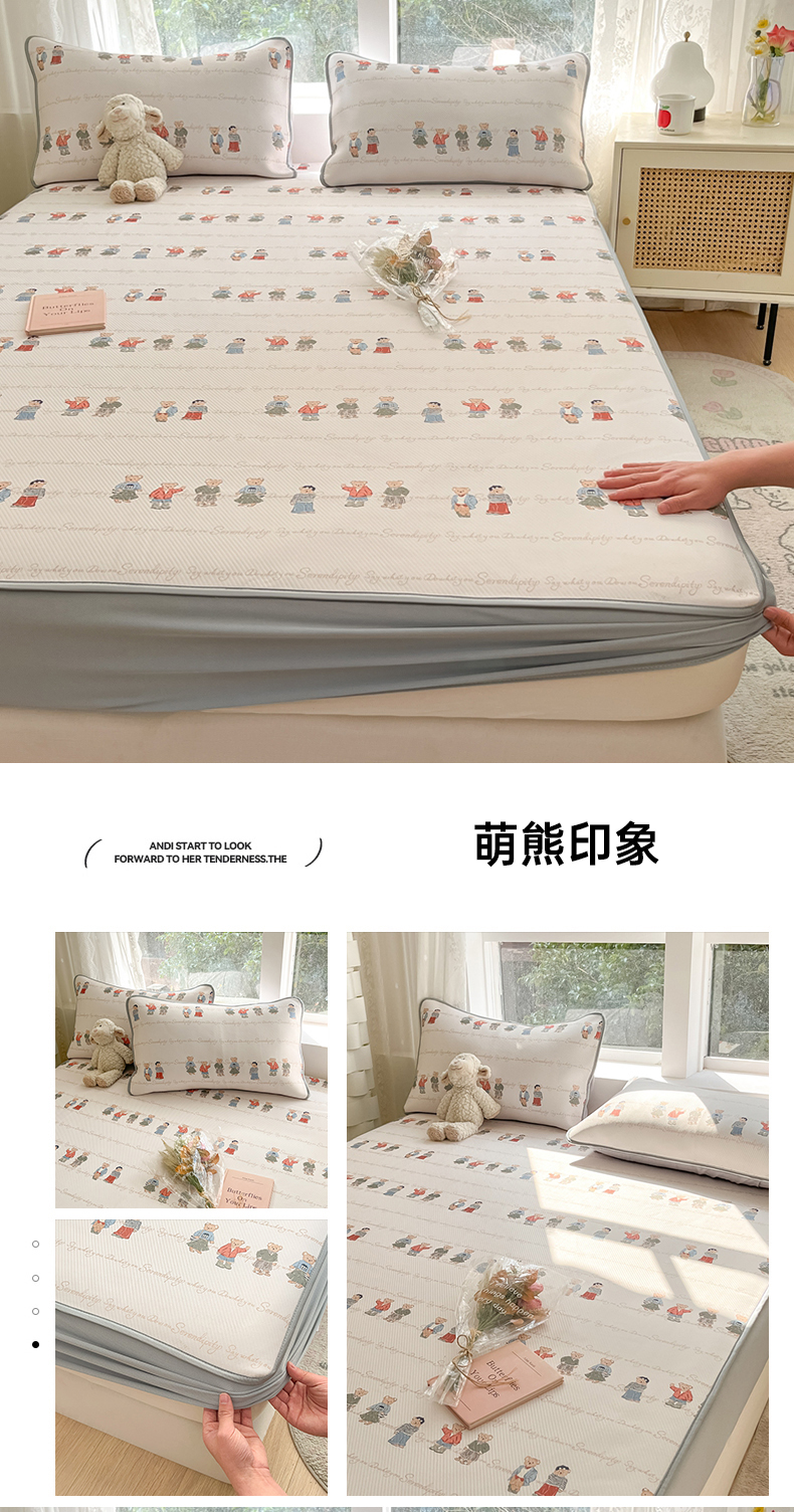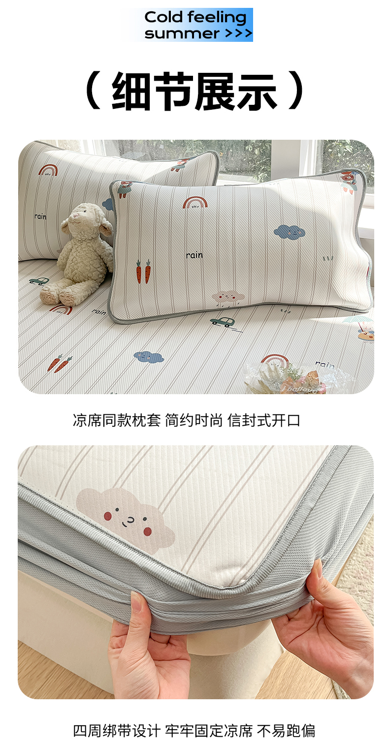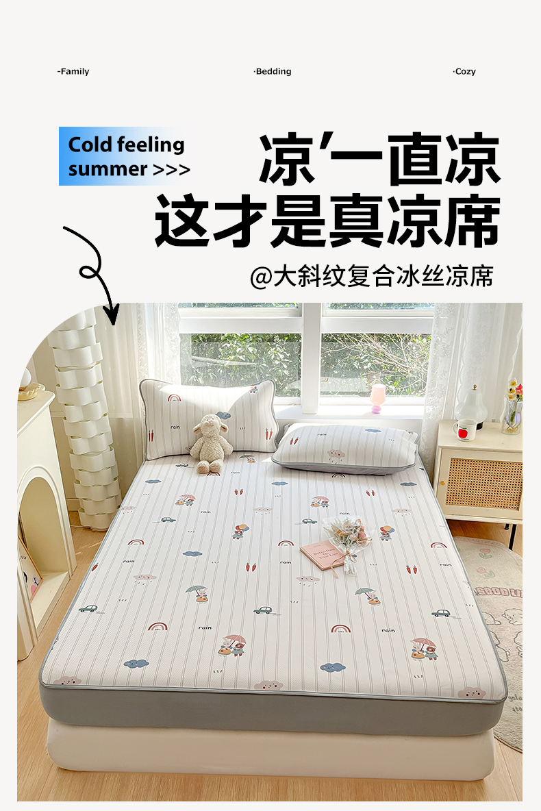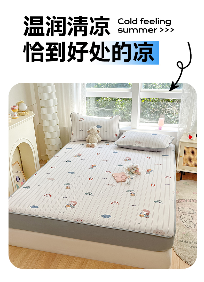 商品名称:女子家纺 2026新款大斜纹复合冰丝凉席-床笠款 悠悠小元-床笠款
