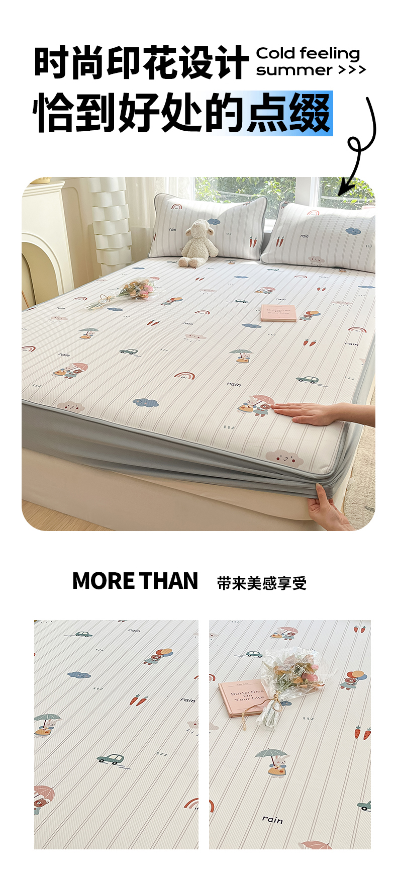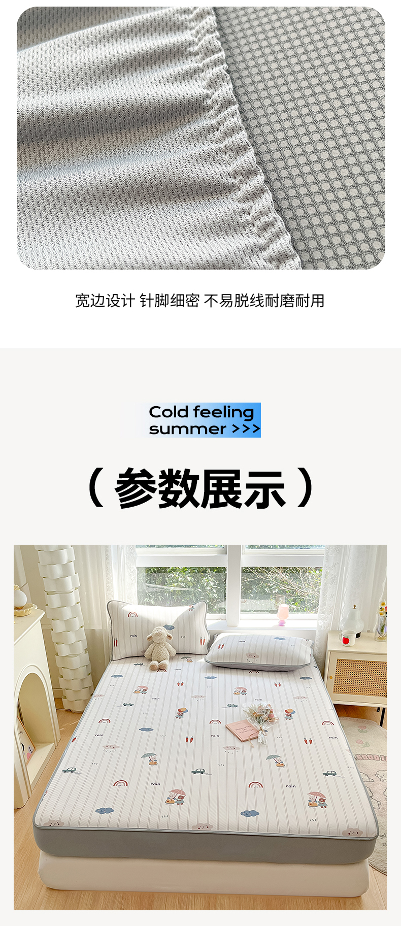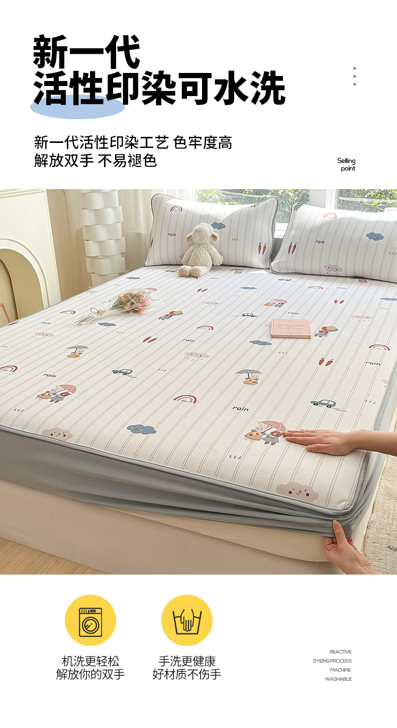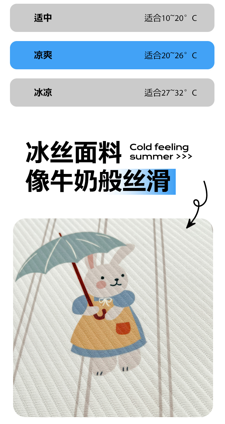 商品名称:女子家纺 2026新款大斜纹复合冰丝凉席-床笠款 悠悠小元-床笠款
