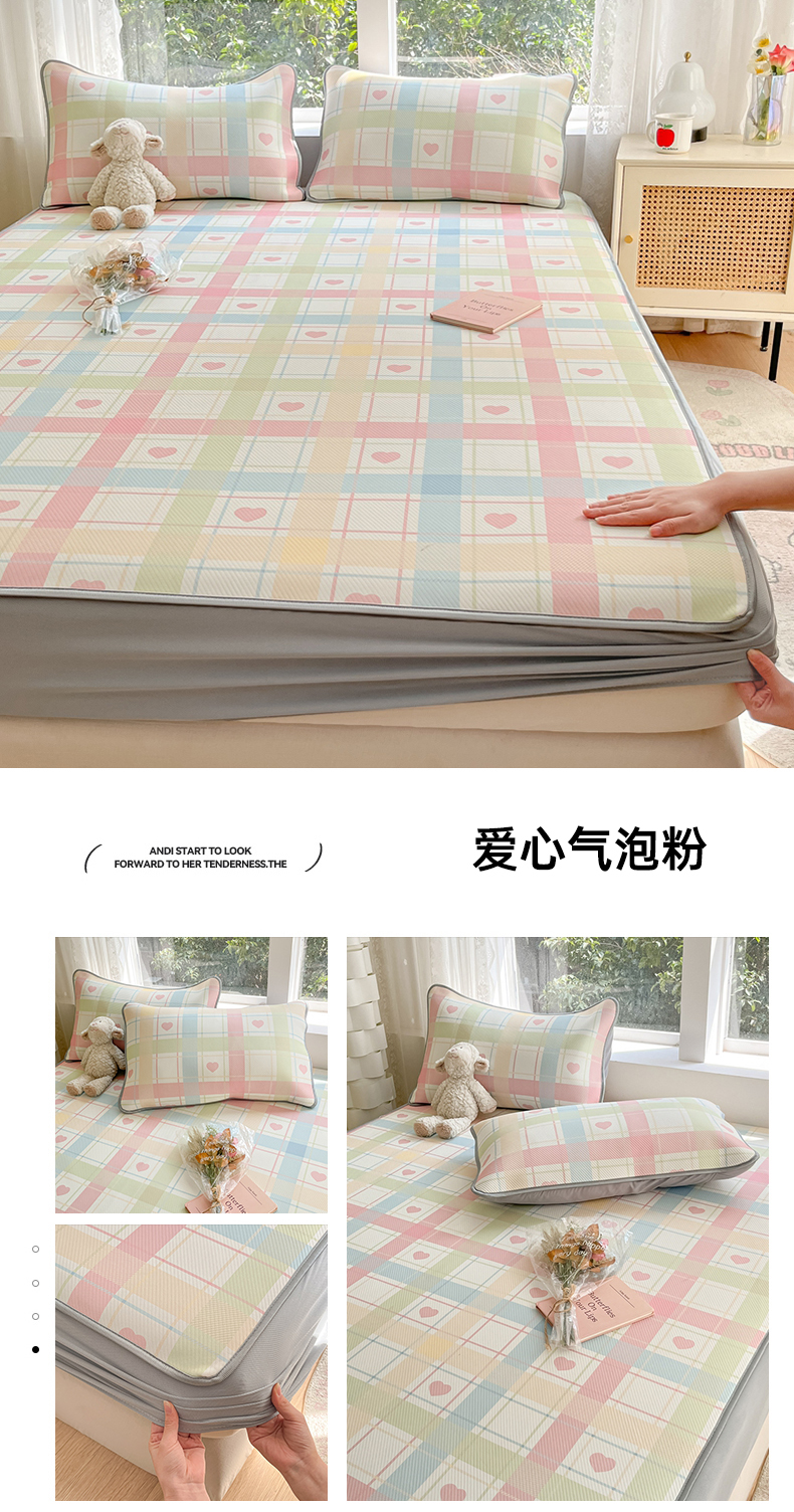 (总)女子家纺 2026新款大斜纹复合冰丝凉席-床笠款,爱心气泡粉-床笠款,萌熊印象-床笠款,奶油草莓-床笠款,拈花湾蓝-床笠款,七彩龙-床笠款,奇妙幻想-床笠款,水木年华-床笠款,午后茶花-床笠款,悠悠小元-床笠款,尤克克里粉-床笠款