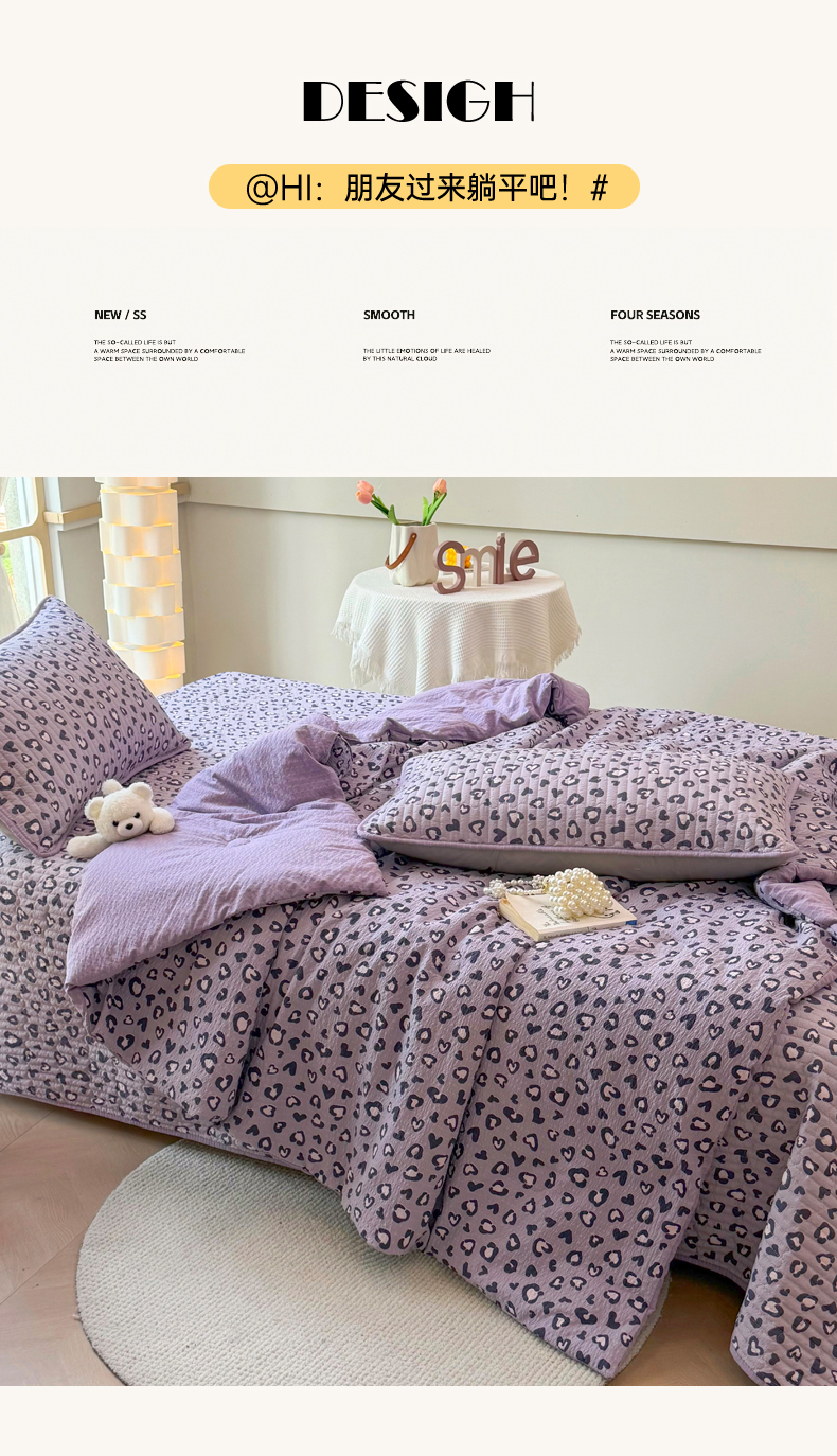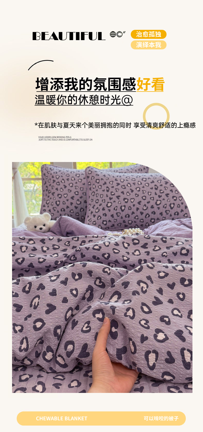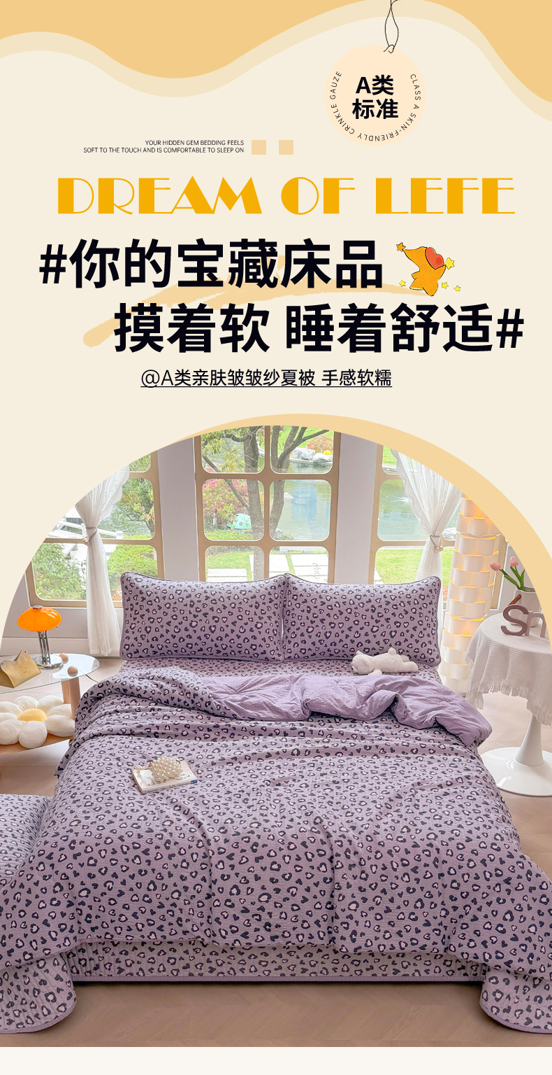 悠米悠家 2026春夏新款泡泡纱印花夏被夏凉被空调被 香芋豹纹心