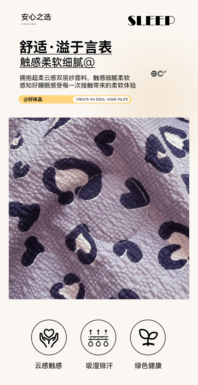 商品名称:悠米悠家 2026春夏新款泡泡纱印花夏被夏凉被空调被 香芋豹纹心