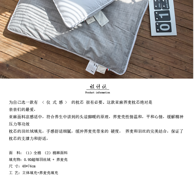 当前位置: 91家纺网 > 商品网购 > 枕头/枕芯/保健枕/颈椎枕 > 普通枕芯 > 方回家纺 亚麻荞麦本真枕