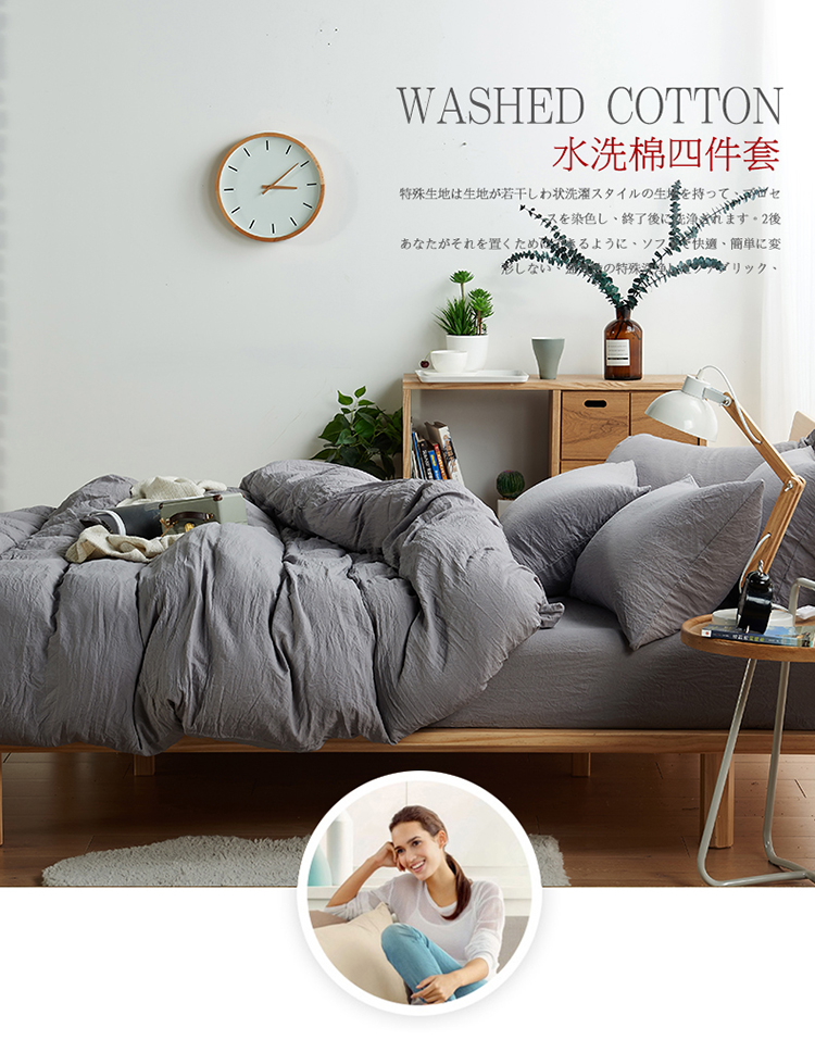 优宜家纺织 水洗棉四件套多规格(纯色系列)床单款纯色-银灰