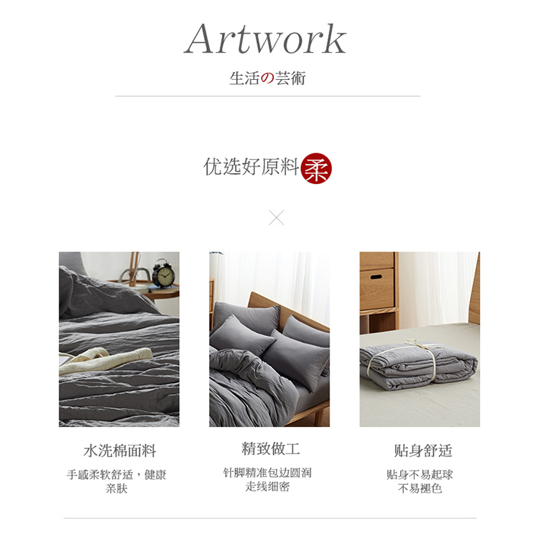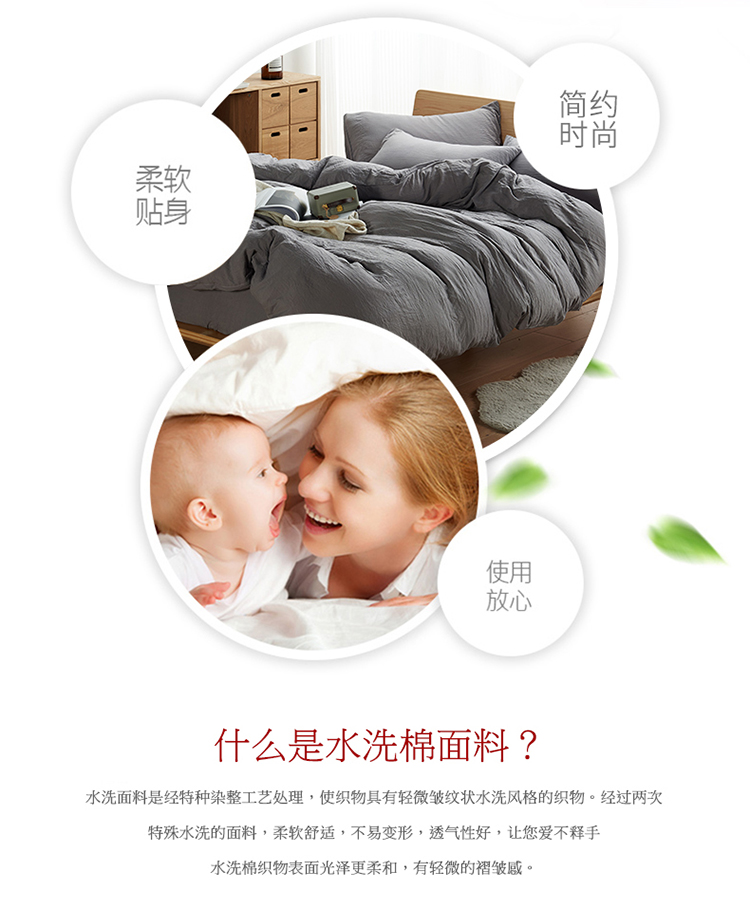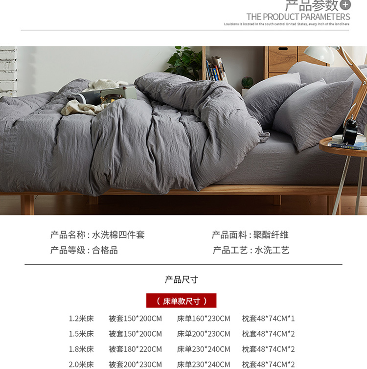 商品名称:优宜家纺织 水洗棉四件套多规格(纯色系列)床单款纯色-银灰