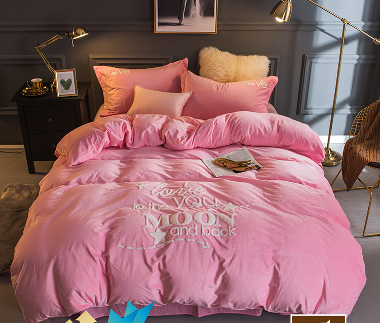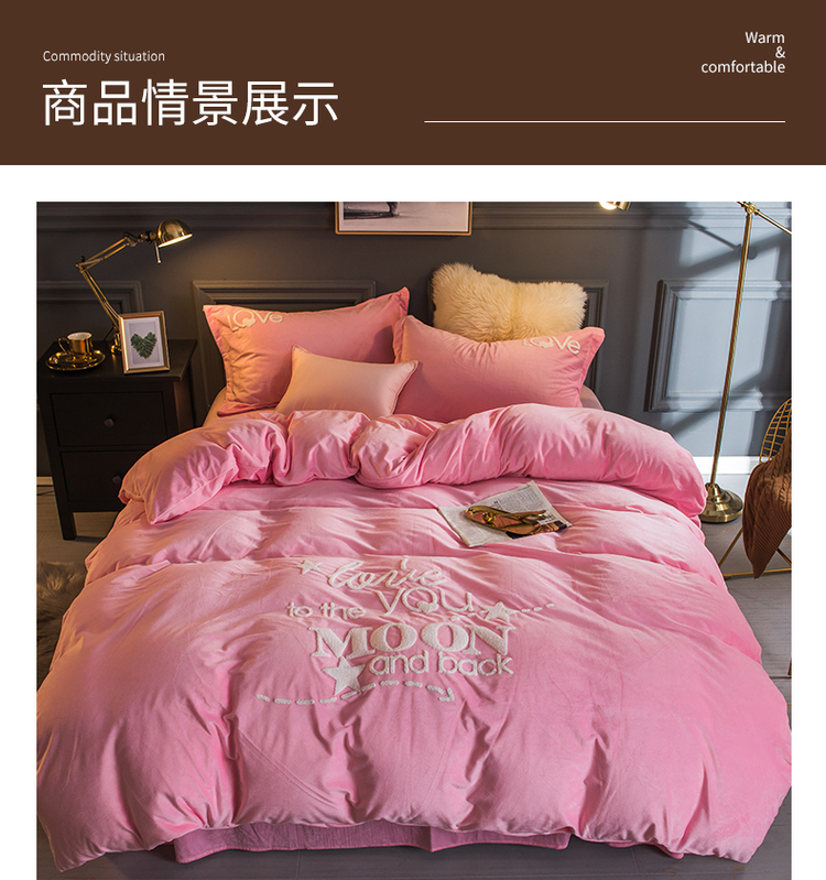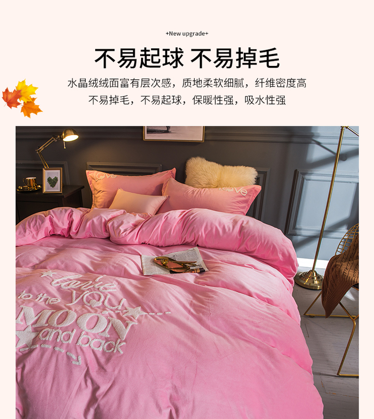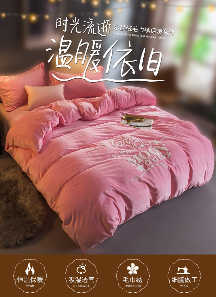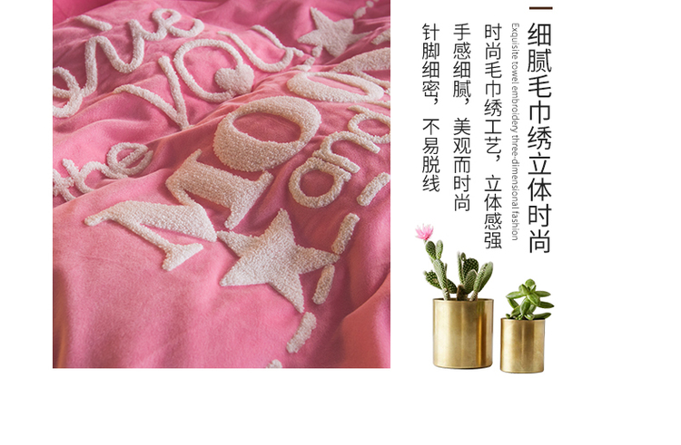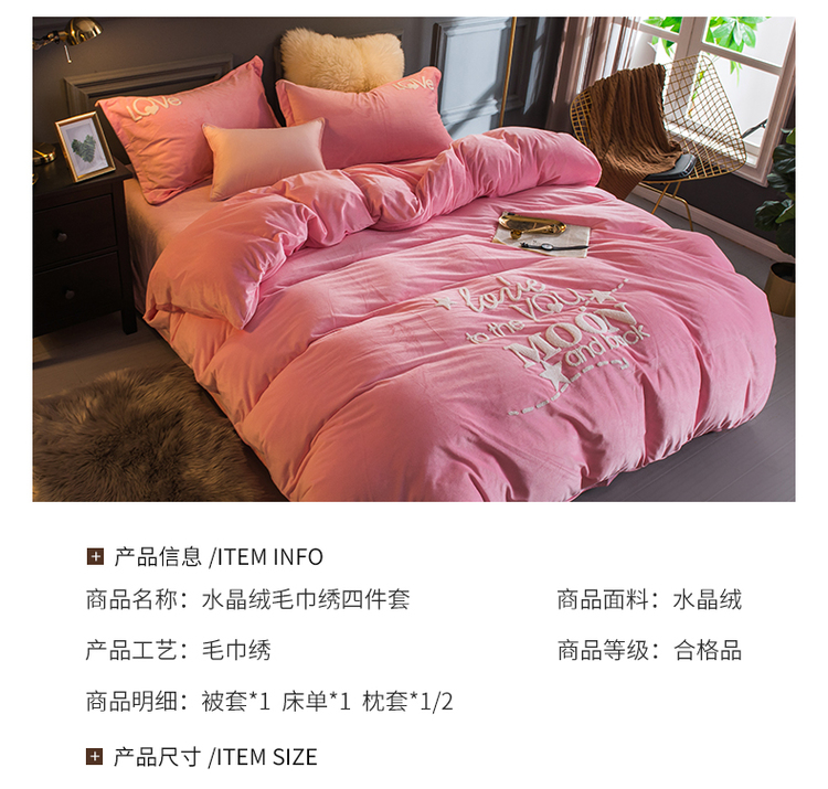 商品名称:卓尔居 水晶绒毛巾绣四件套爱你每一天 粉