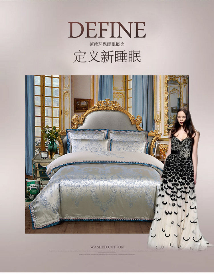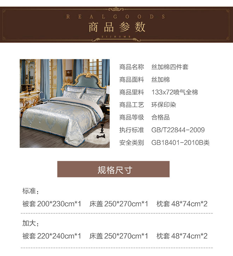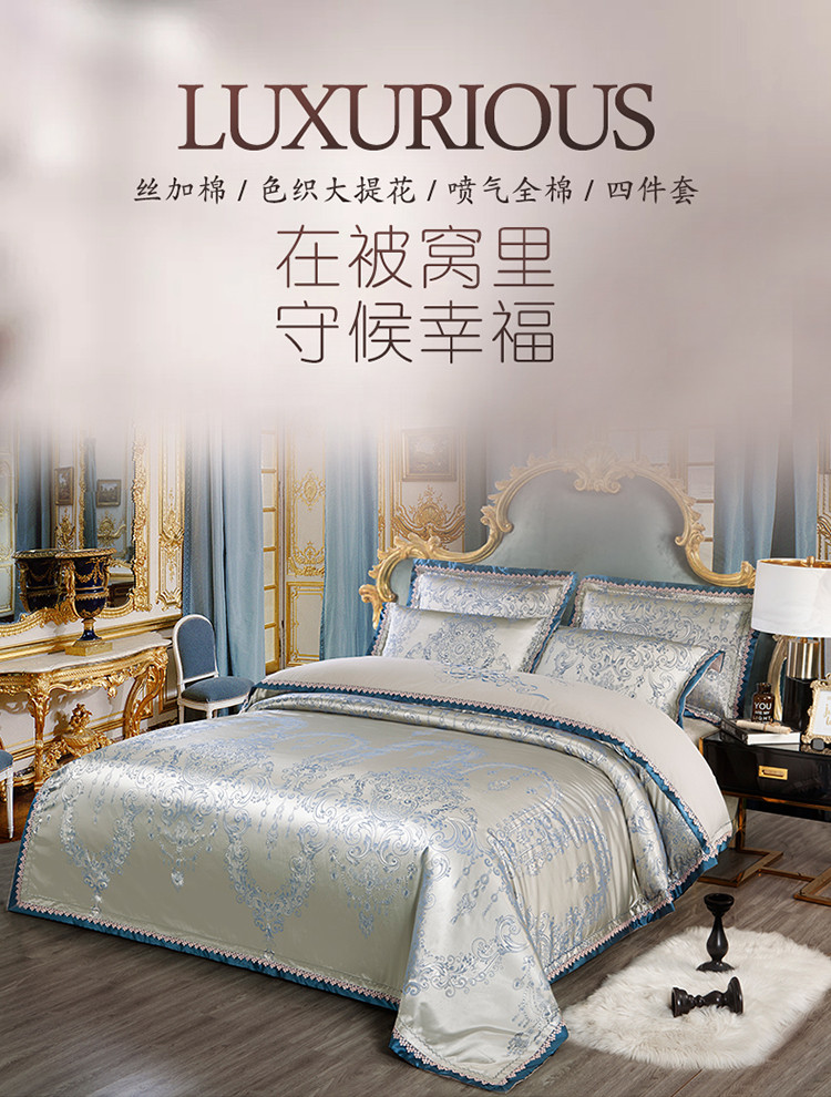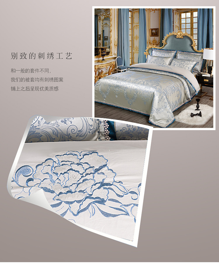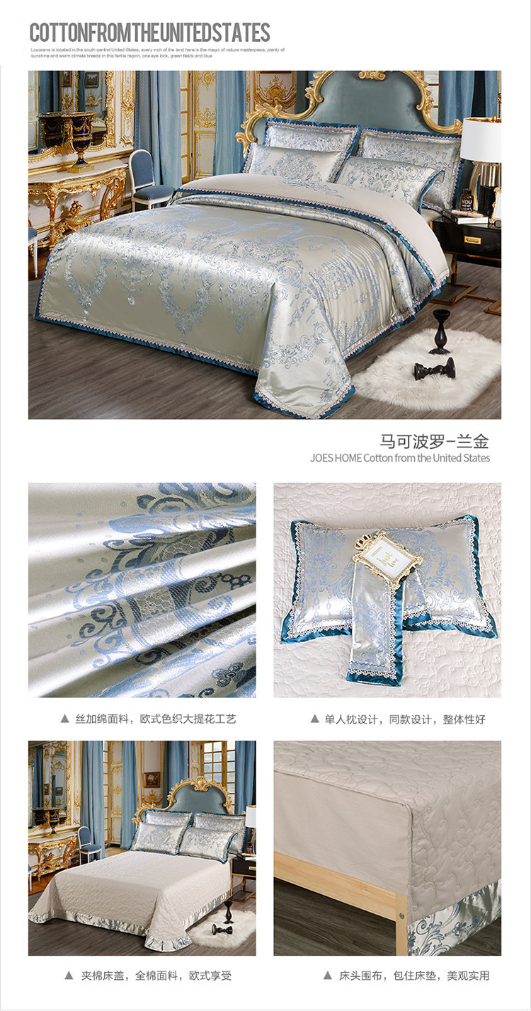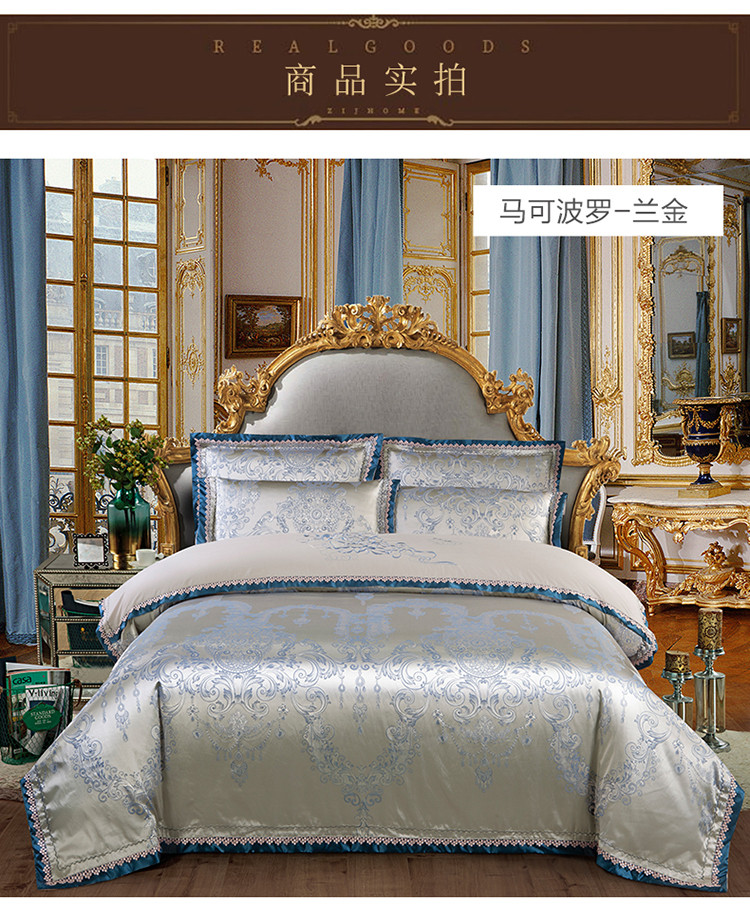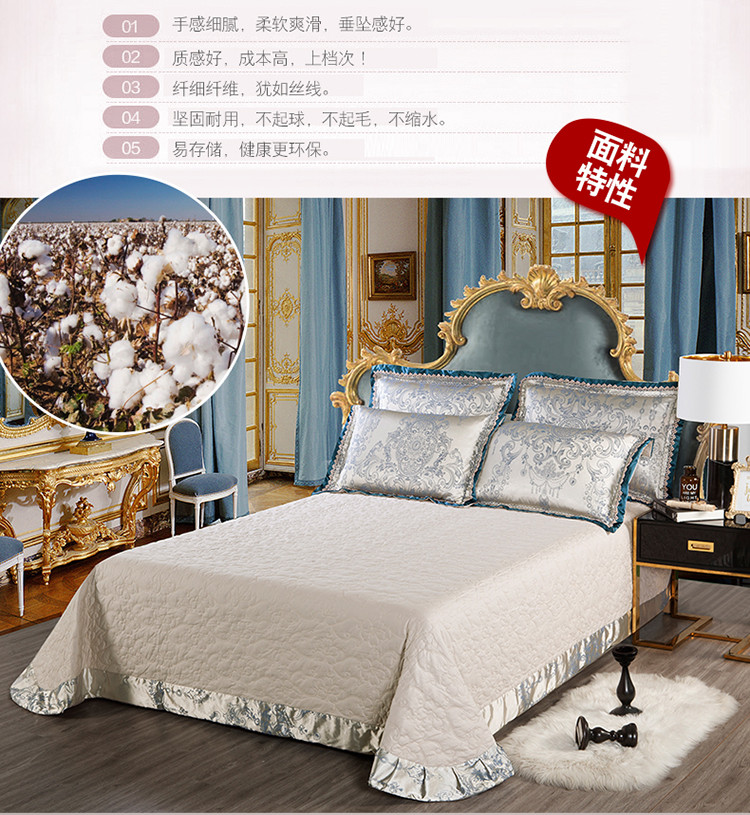 商品名称:OL家纺 欧式轻奢丝加棉贡缎大提花床盖四件套 马克波罗-兰金
