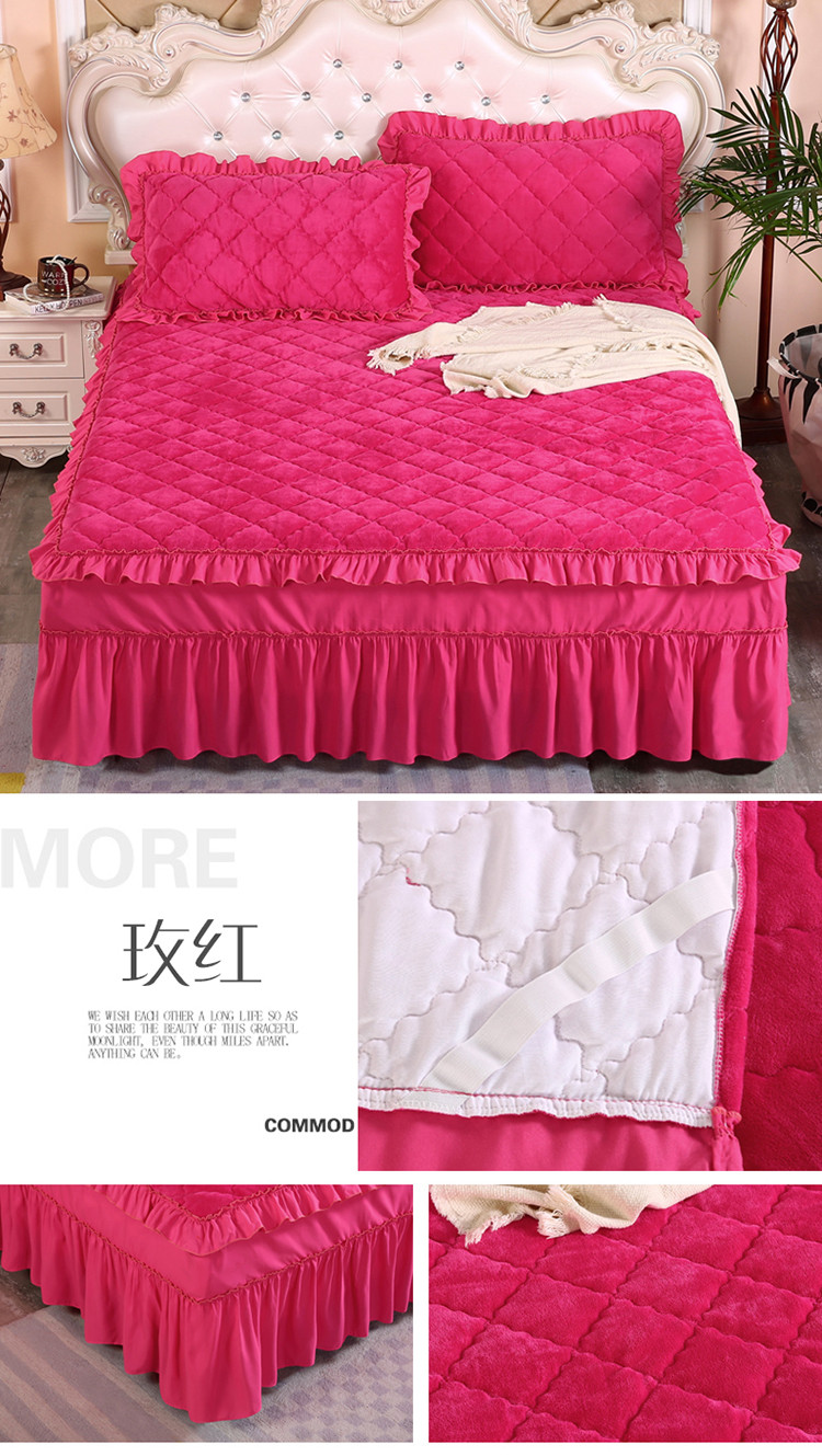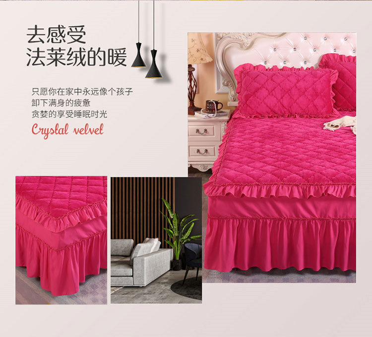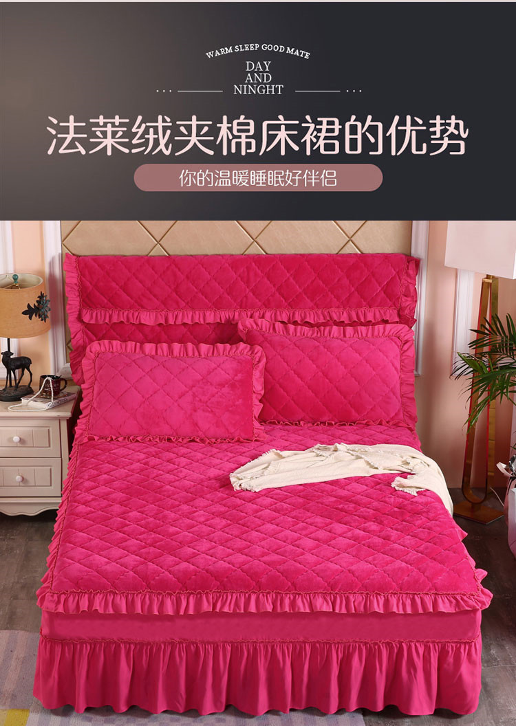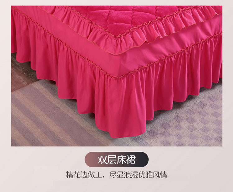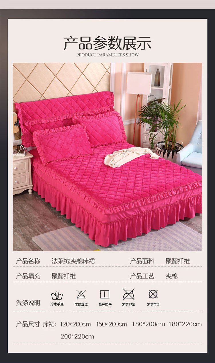 商品名称:情恒家纺 2020新款法莱绒夹棉床裙 玫红