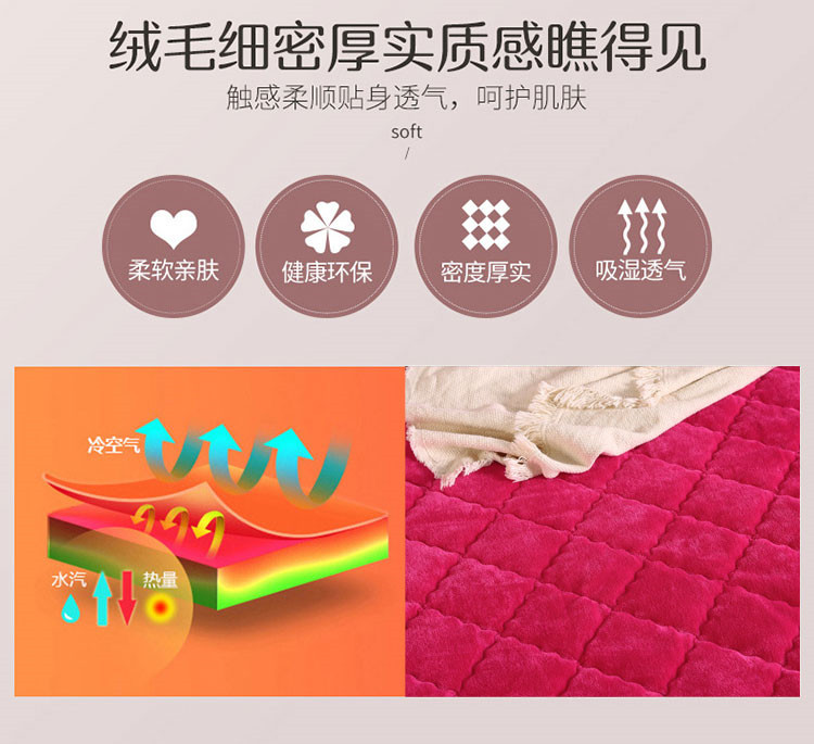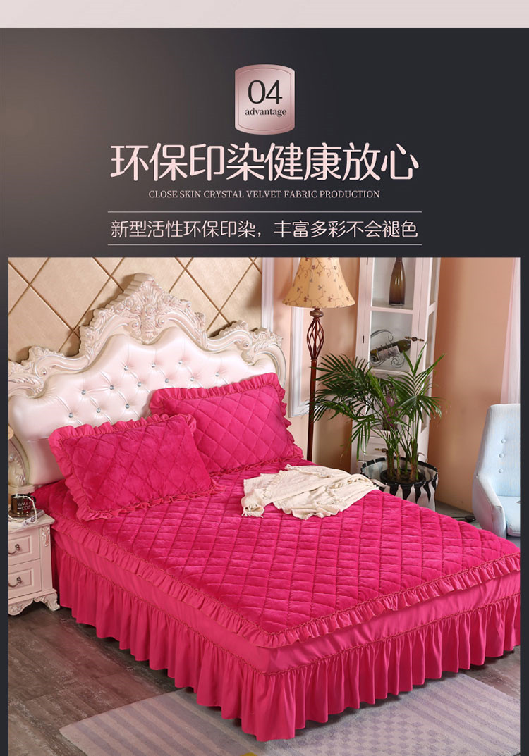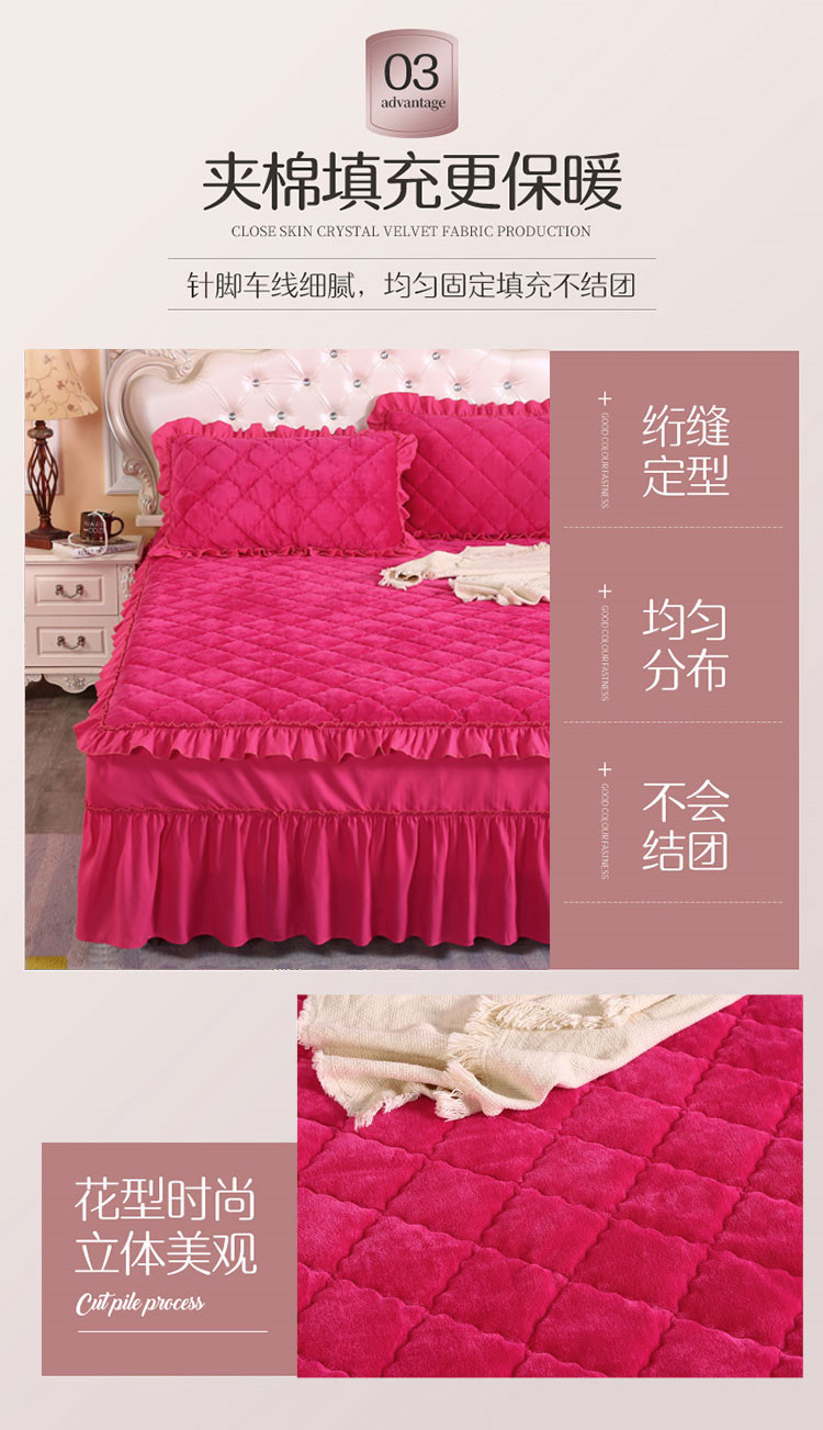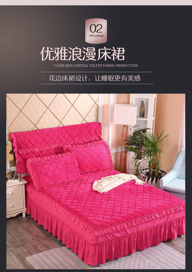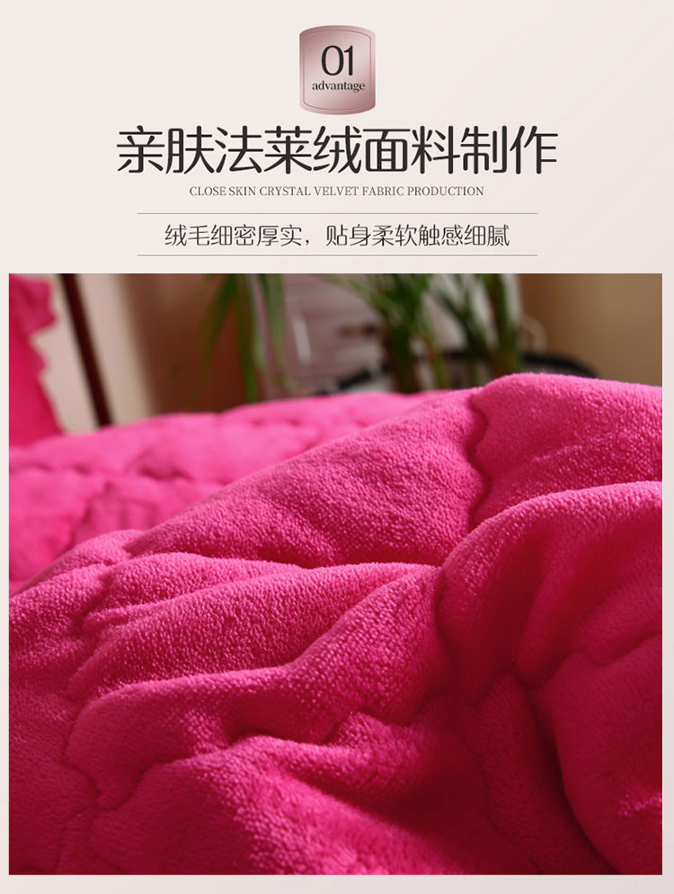 商品名称:情恒家纺 2020新款法莱绒夹棉床裙 玫红