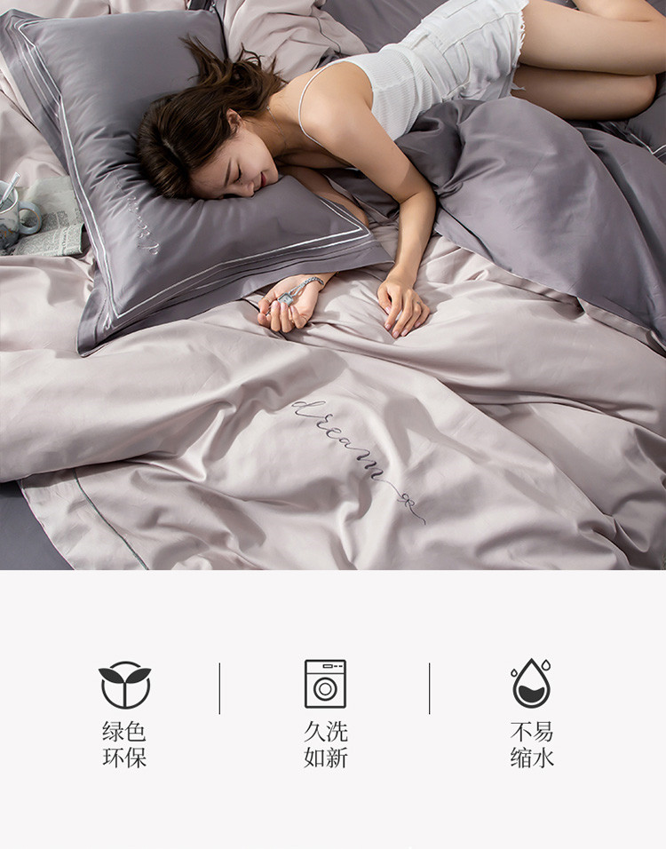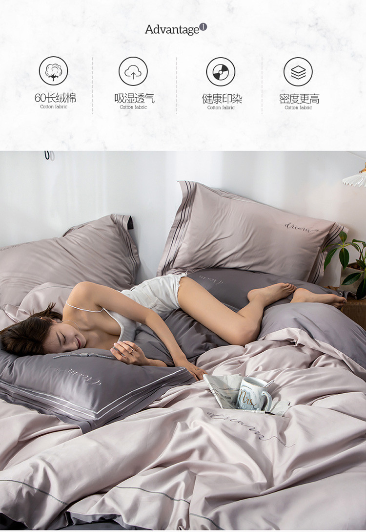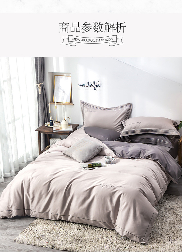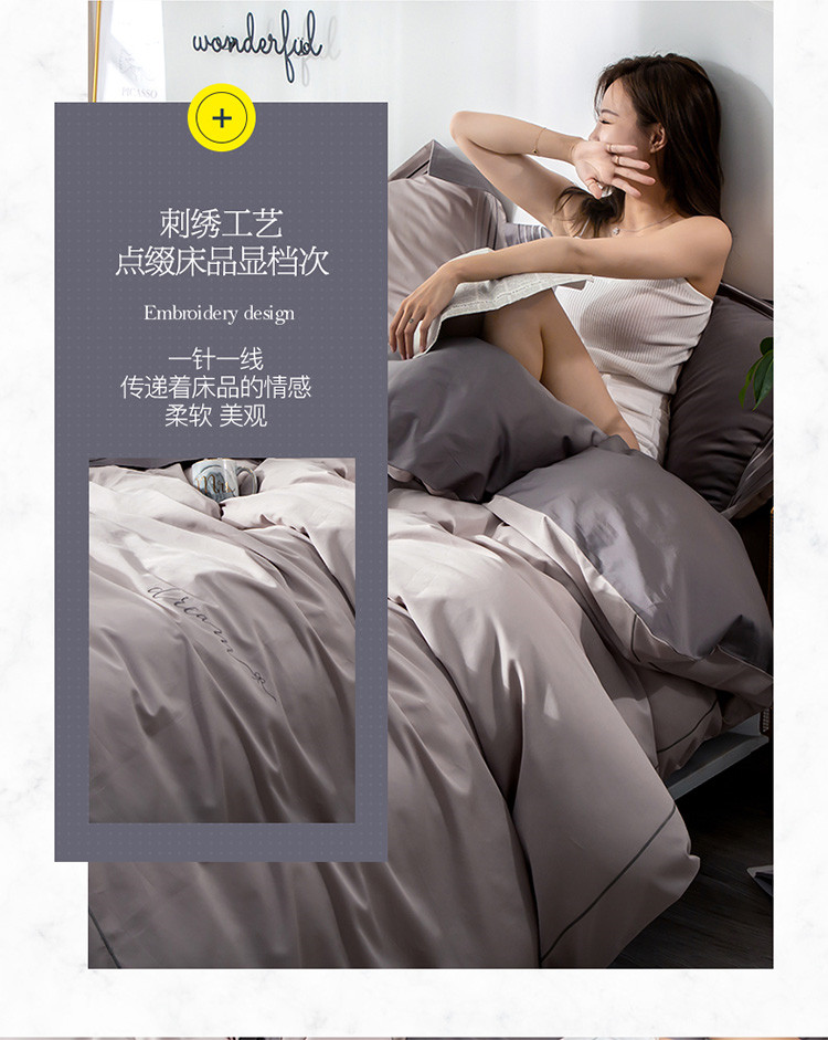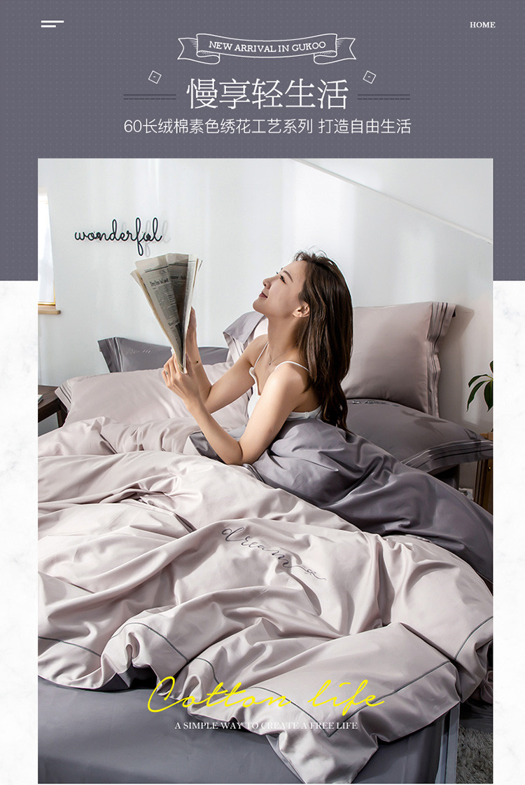 商品名称:瑞米家居 2019新款60长绒棉素色绣工艺系列四件套 谷色
