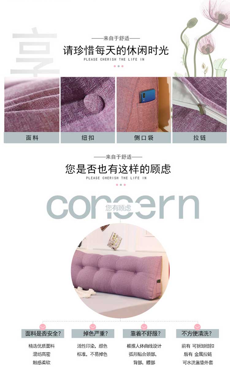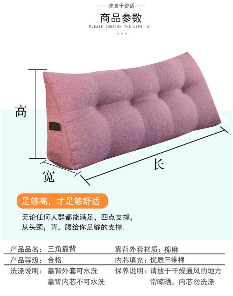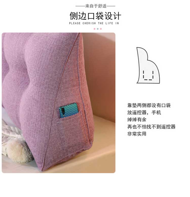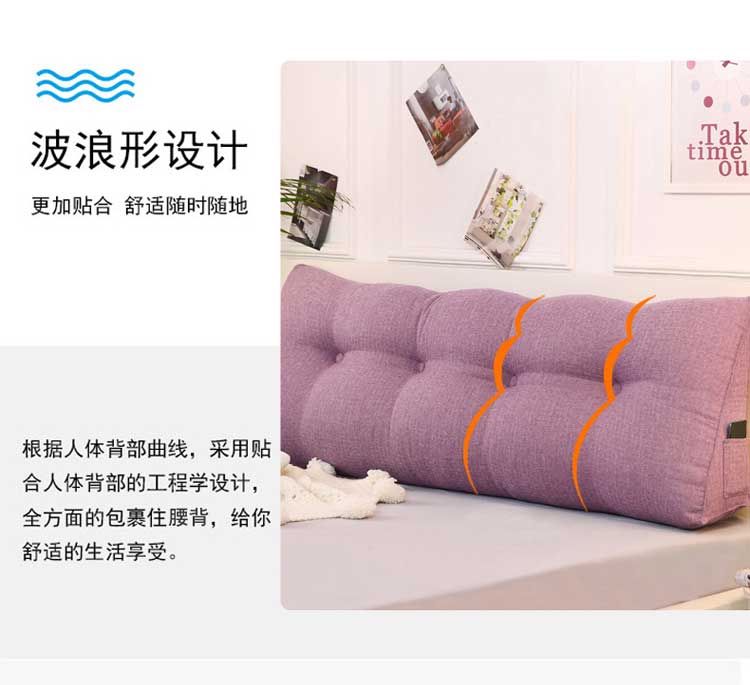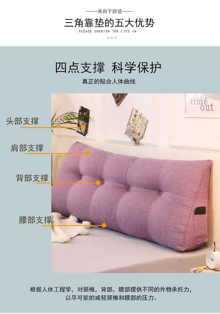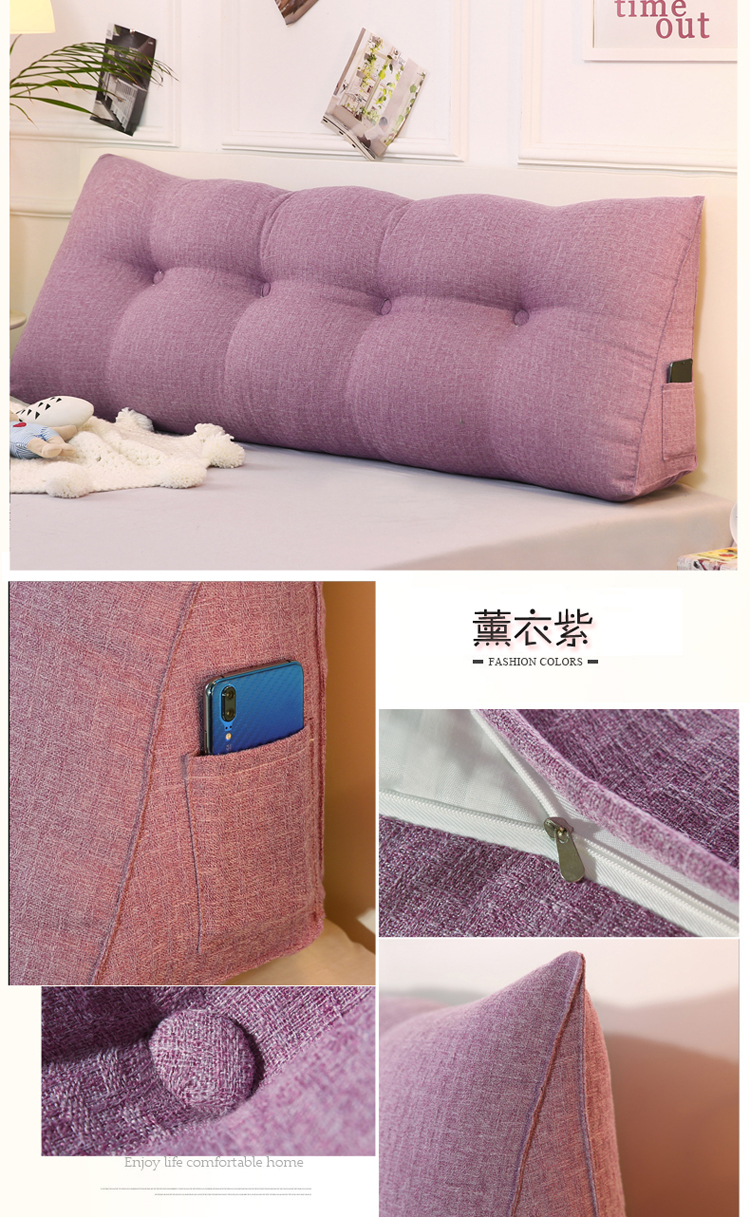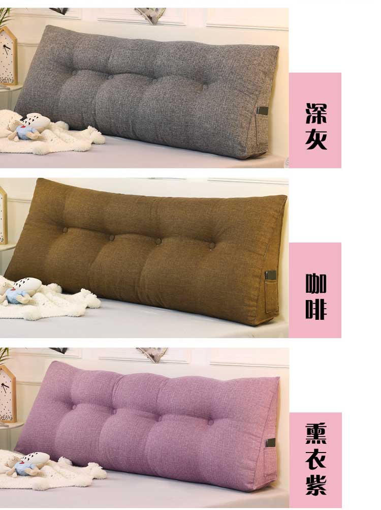 商品名称:永光新款棉麻长三角靠垫 紫色床头靠垫大靠背靠枕双人可拆洗