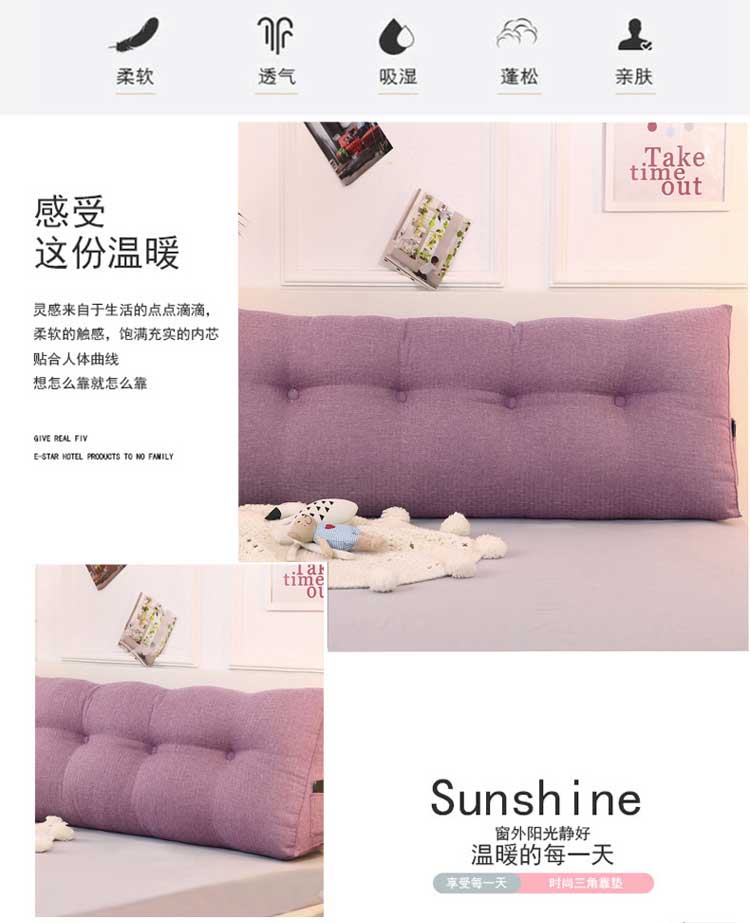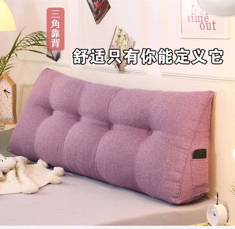 永光新款棉麻长三角靠垫 紫色床头靠垫大靠背靠枕双人可拆洗