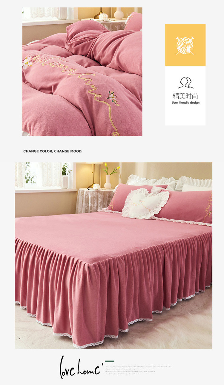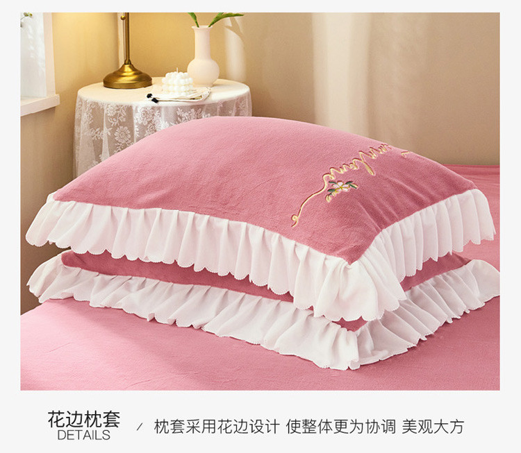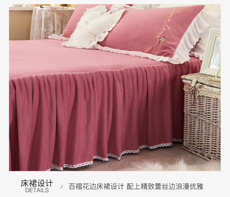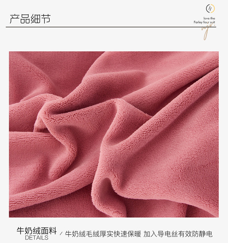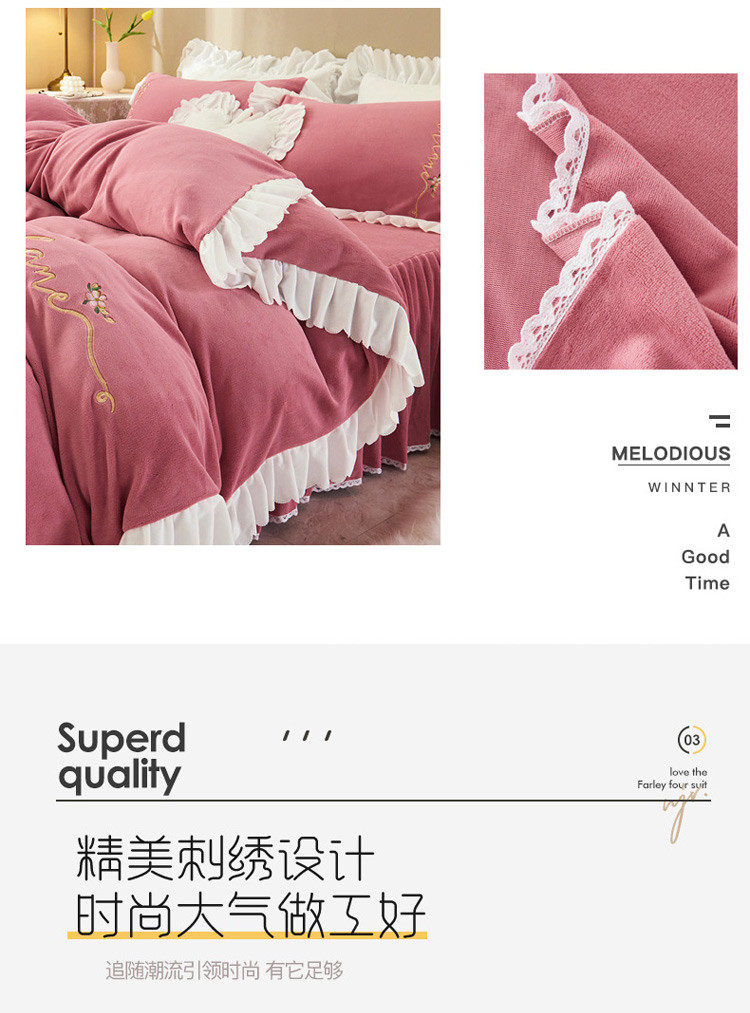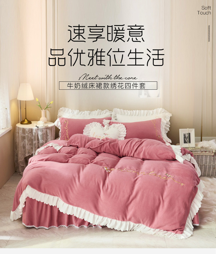 商品名称:菊上家纺 2019绣花牛奶绒冬季恋歌系列四件套 玫粉