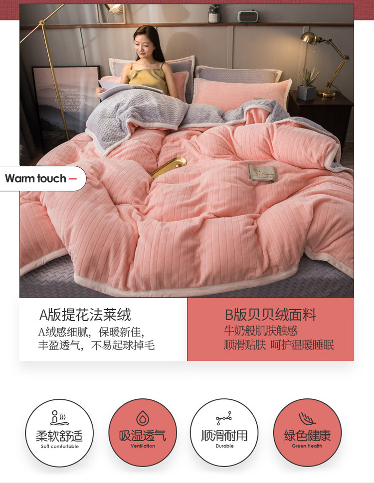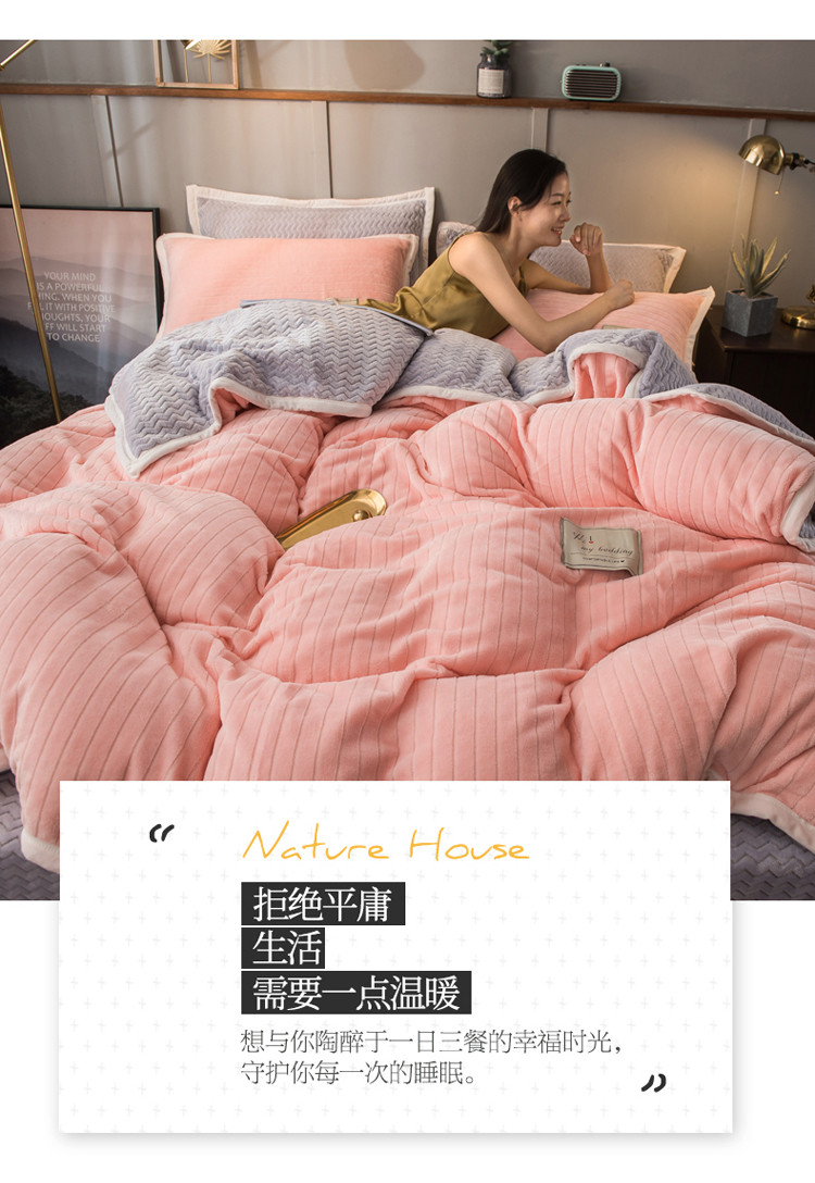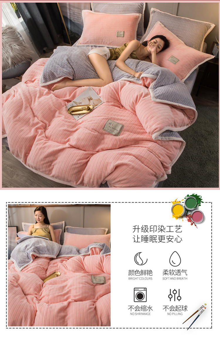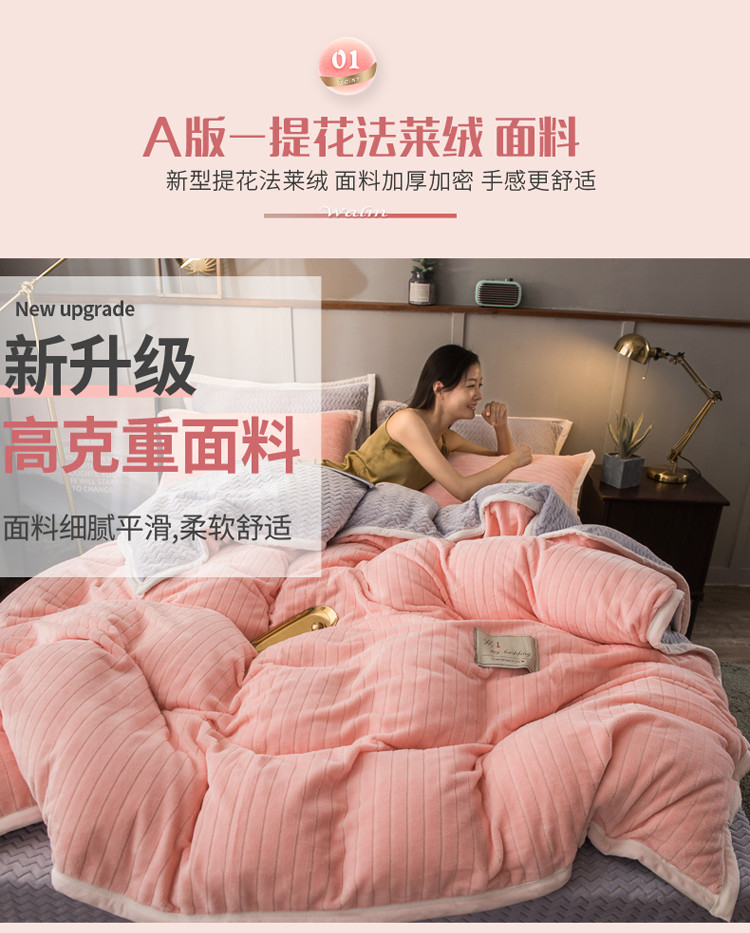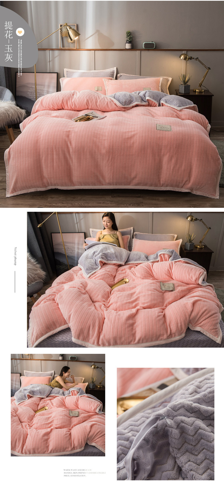 欧冠 2019提花法莱绒加贝贝绒加厚四件套 玉灰