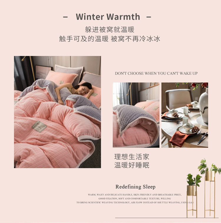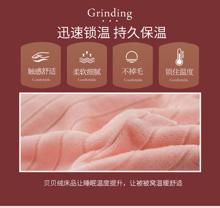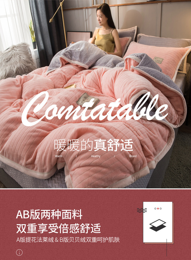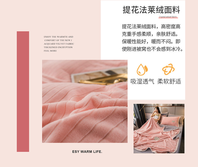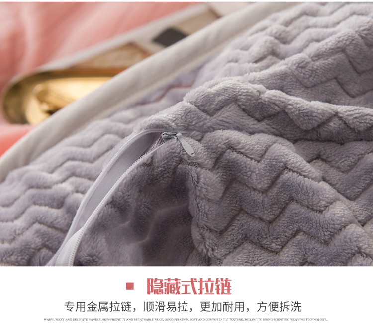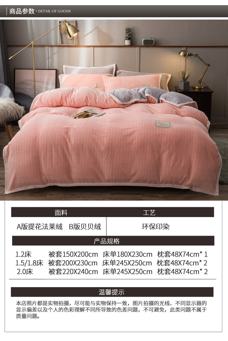 商品名称:欧冠 2019提花法莱绒加贝贝绒加厚四件套 玉灰