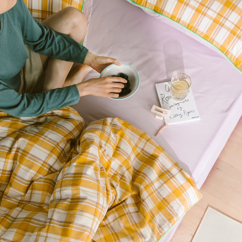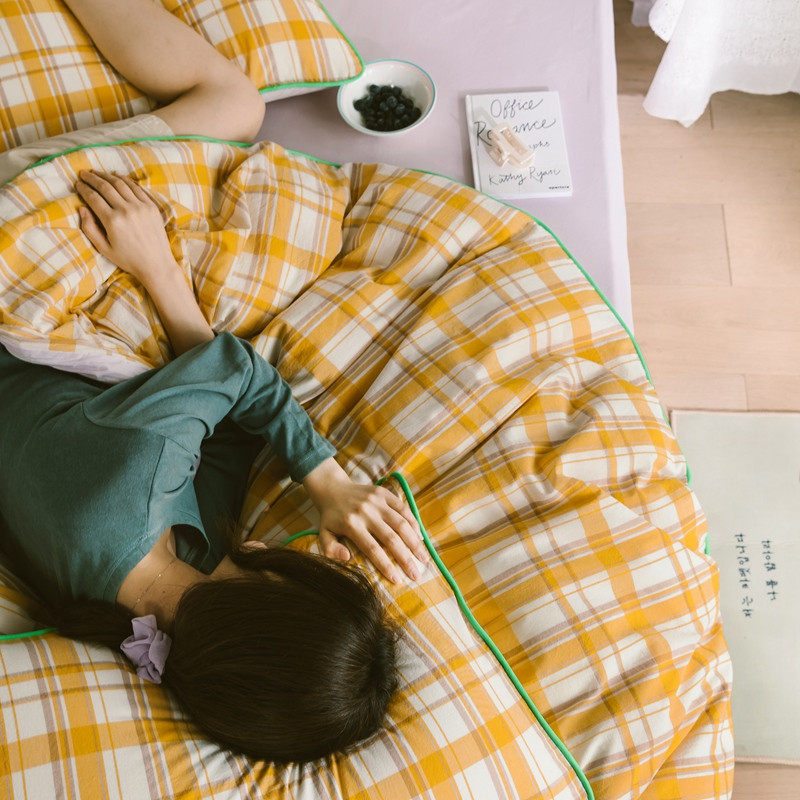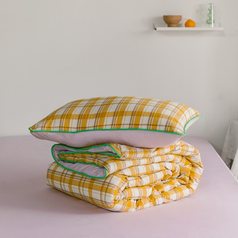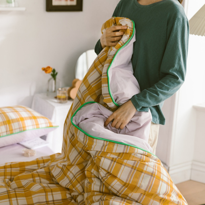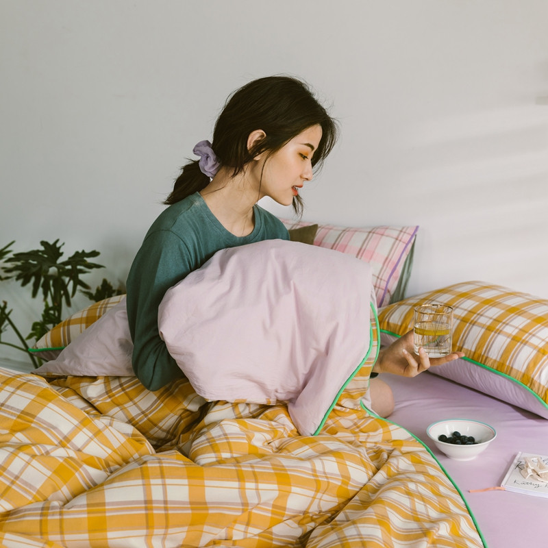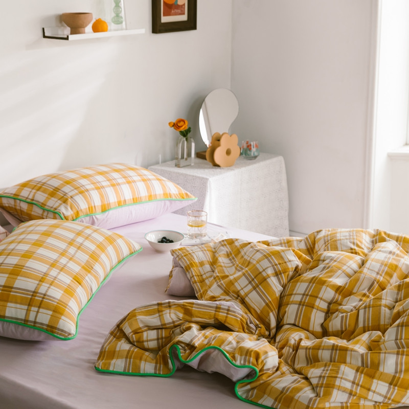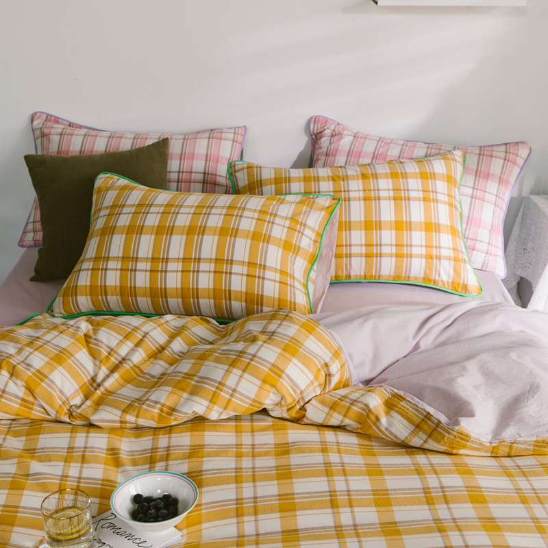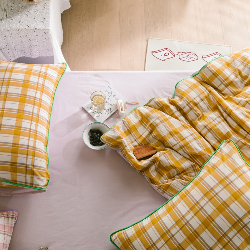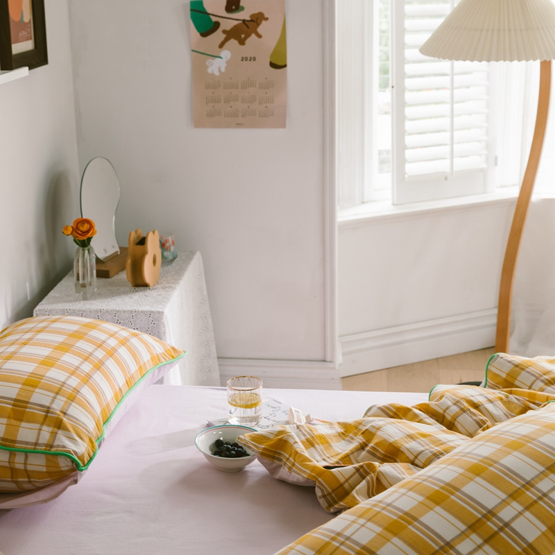 商品名称:棉眠2020夏季新款32支色织水洗棉四件套 大黄格