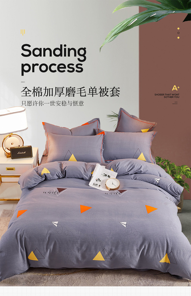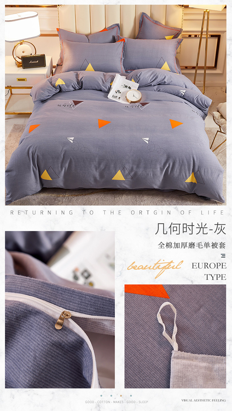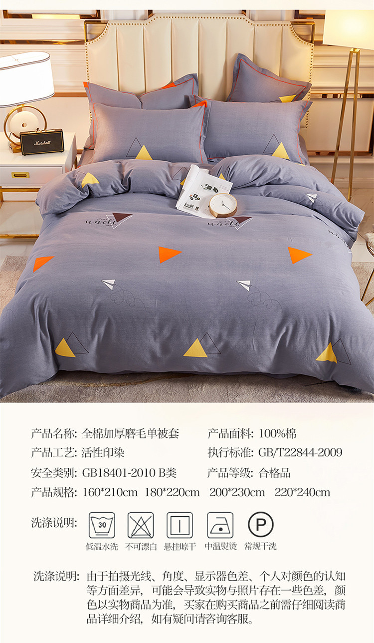 商品名称:雲归梦 2020新款多规格全棉加厚磨毛单被套 几何时光-灰