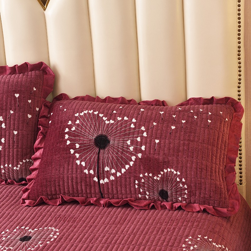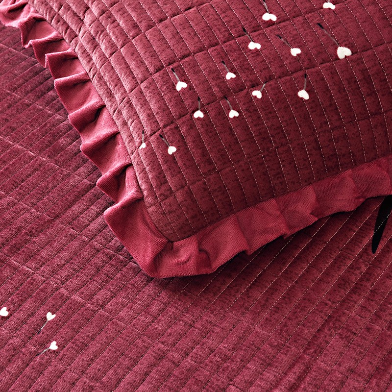 • 91家纺网 家纺一手货源 找家纺 雨洋家纺 2025新款水晶绒枕套一对 爱心花-酒红
