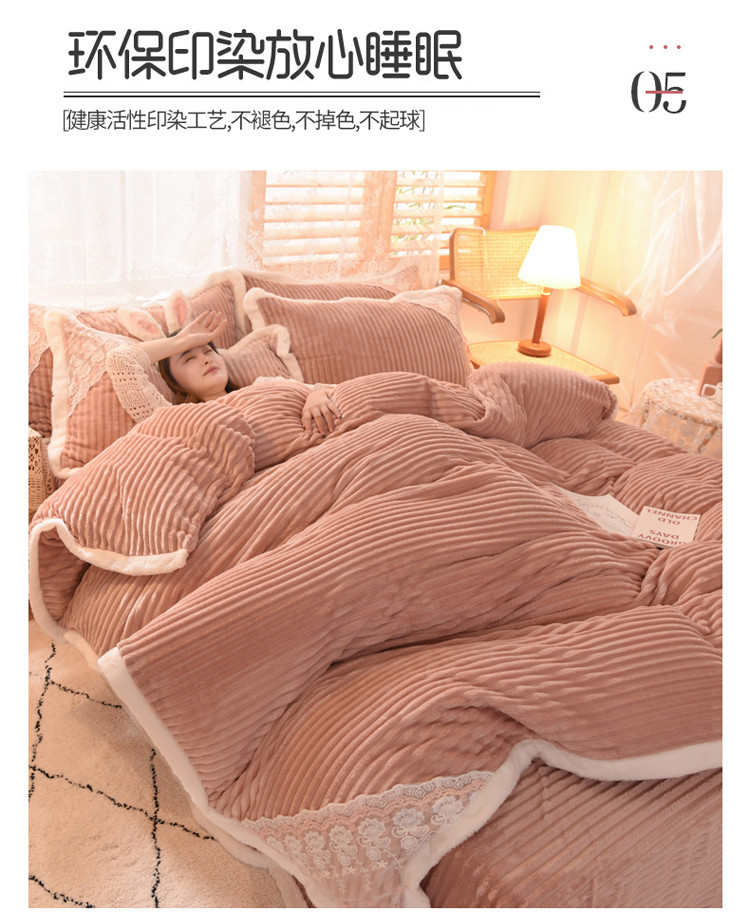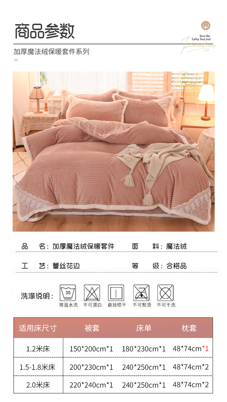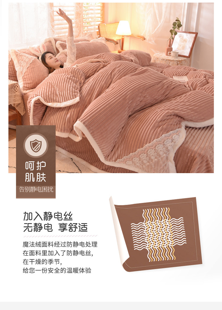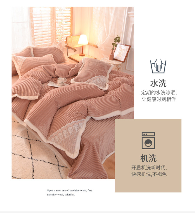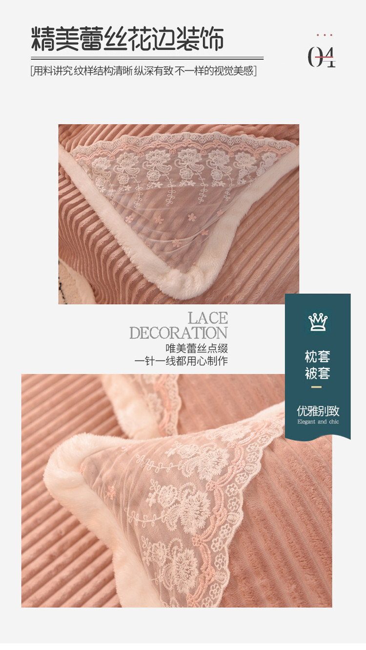 商品名称:欧冠 2020双面魔法绒兔兔绒蕾丝花边四件套 浅豆沙