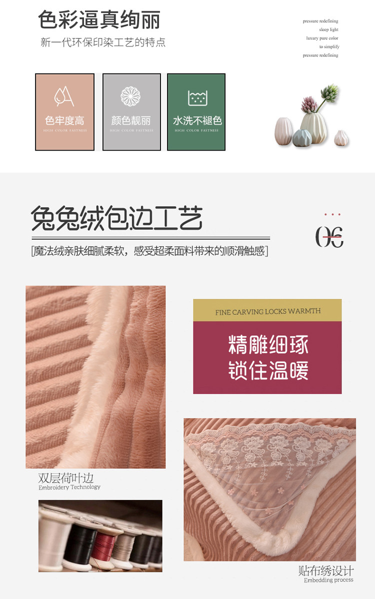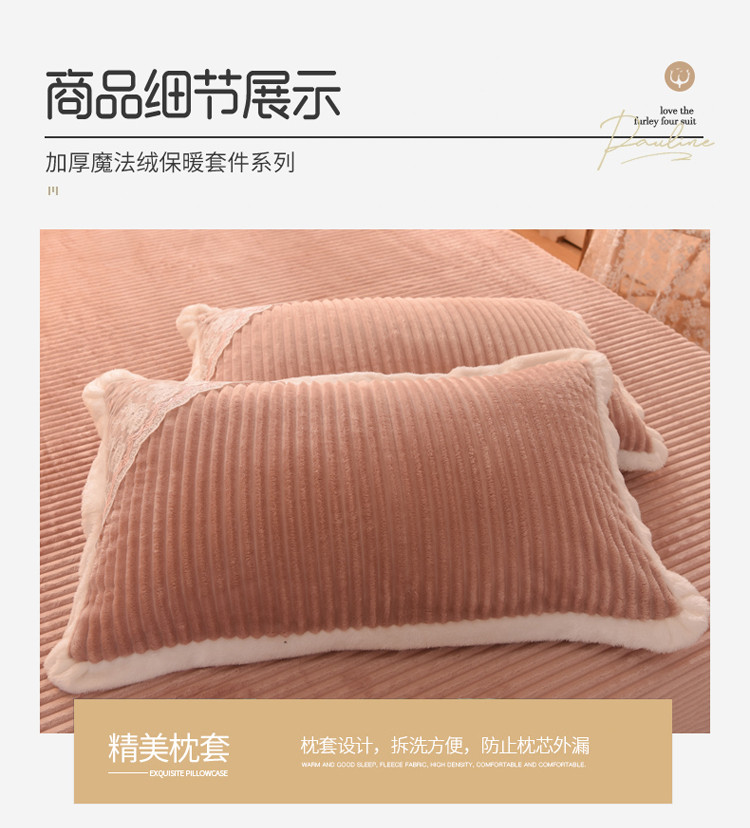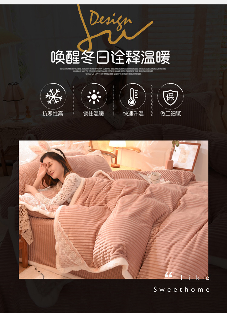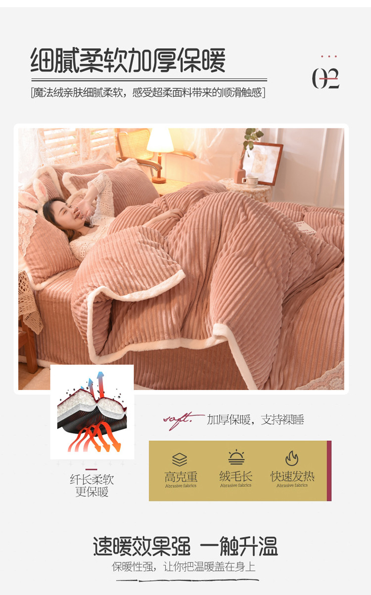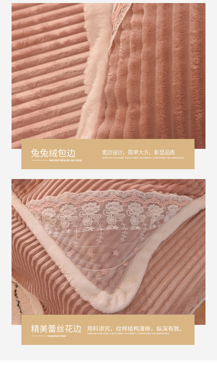商品名称:欧冠 2020双面魔法绒兔兔绒蕾丝花边四件套 浅豆沙