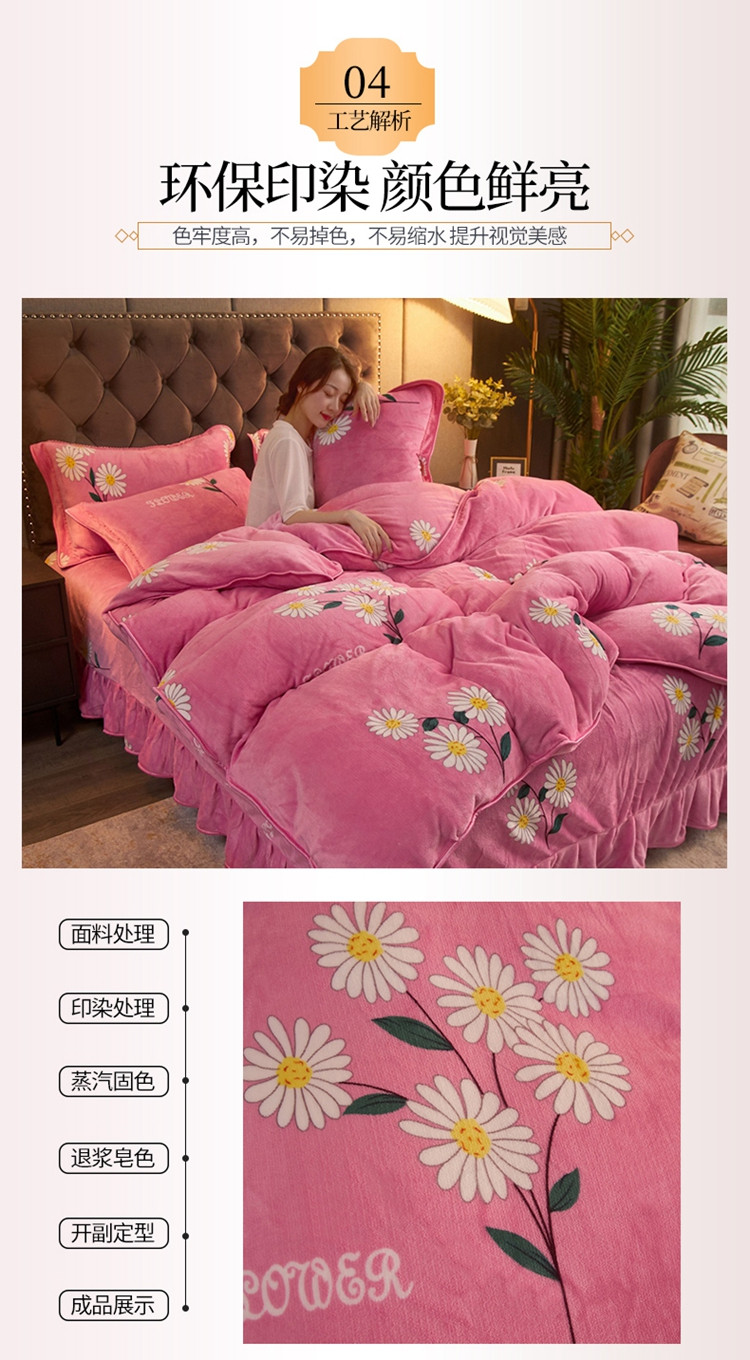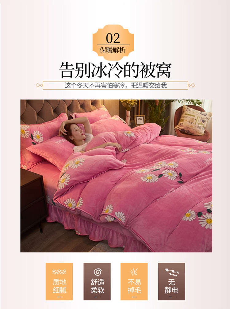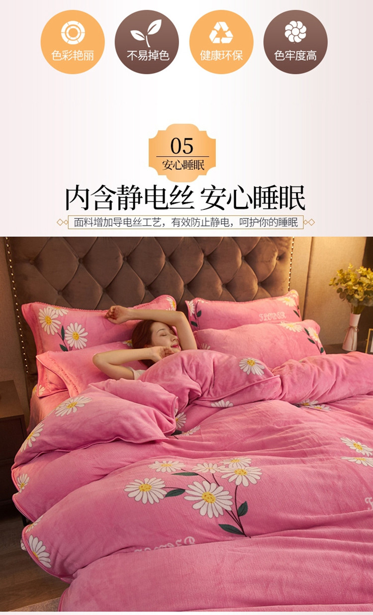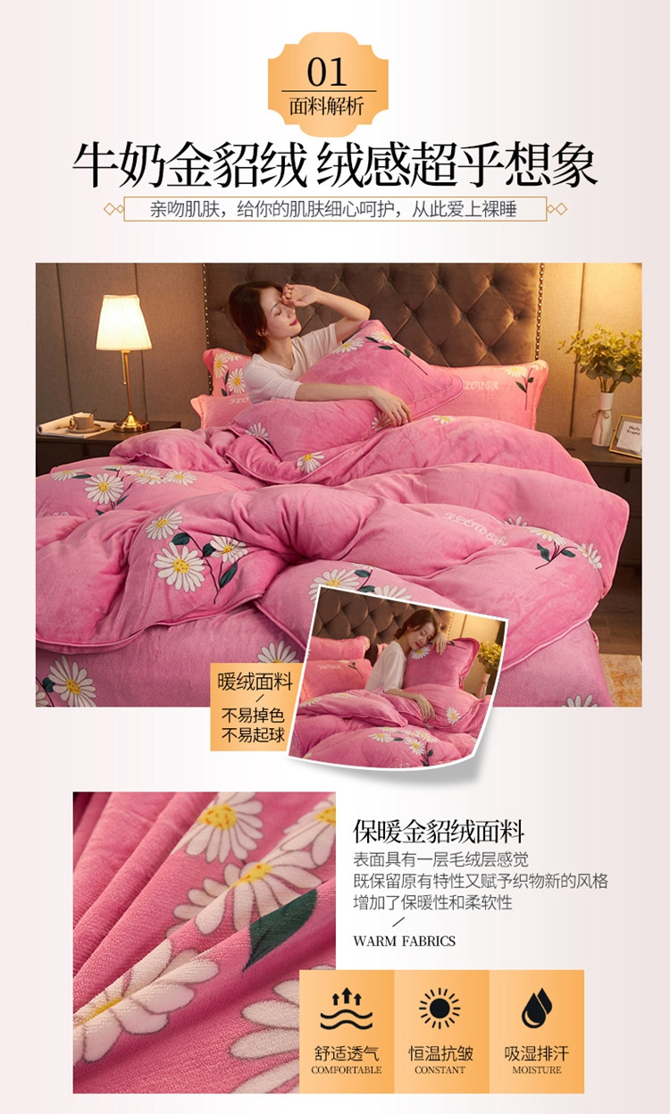 爱洛牛奶绒宝宝绒水晶绒法莱绒金貂绒四件套 菊花粉色