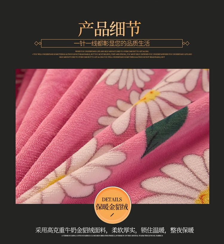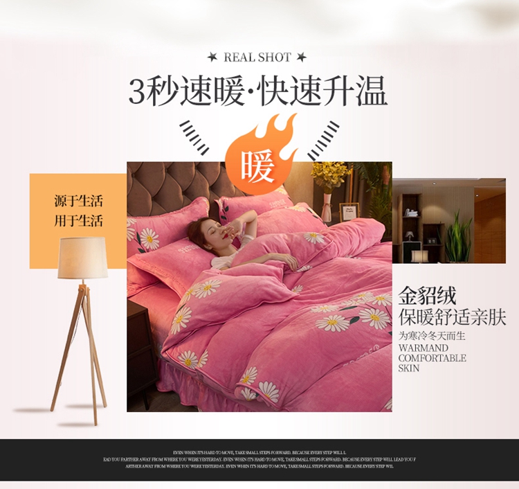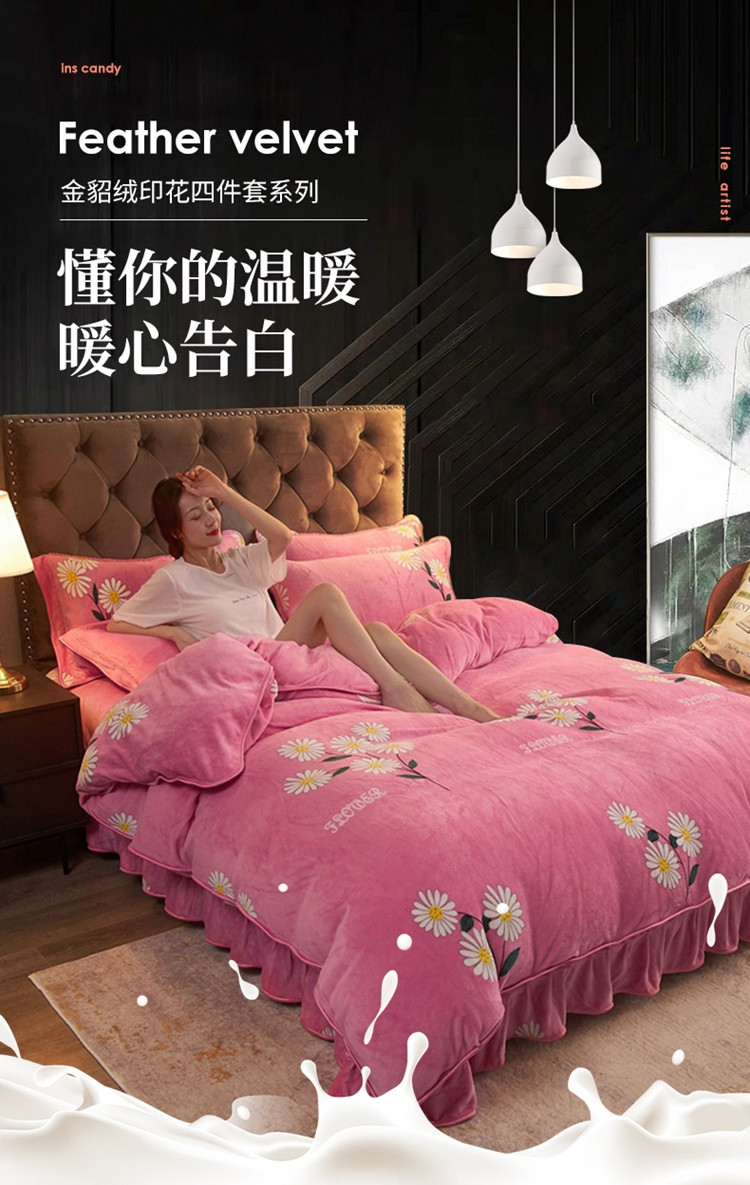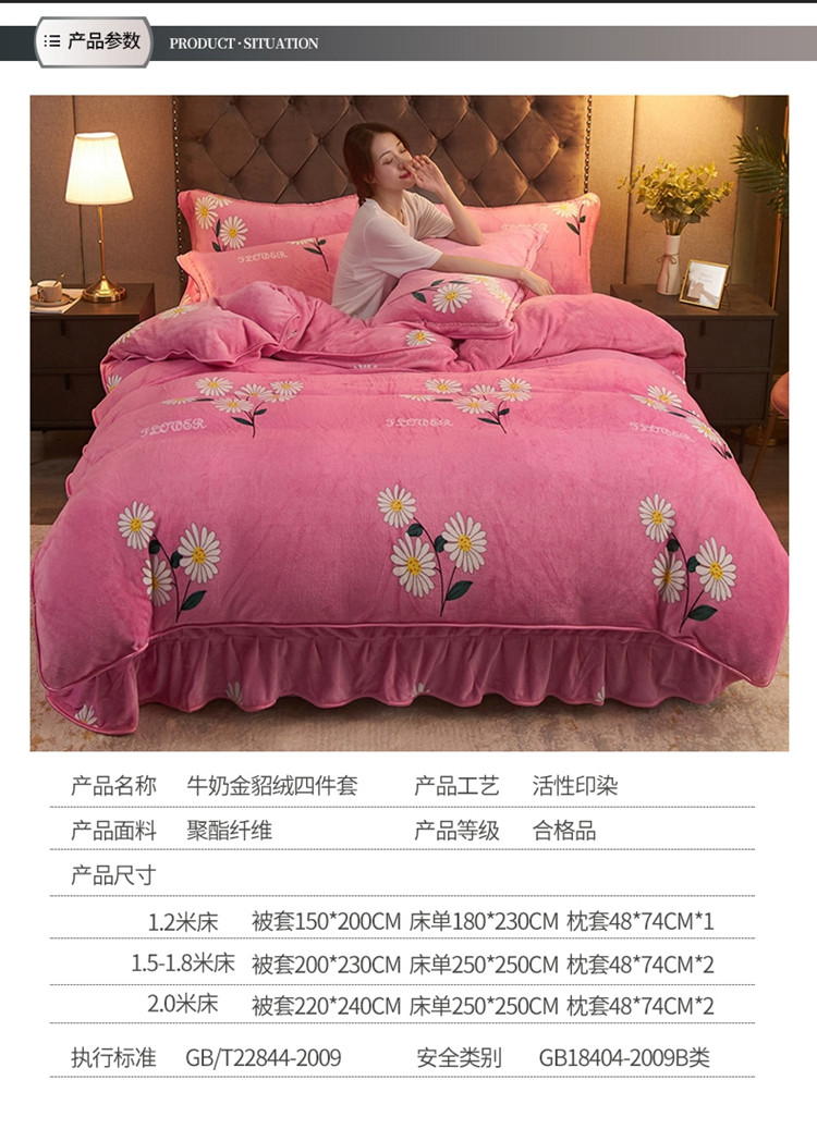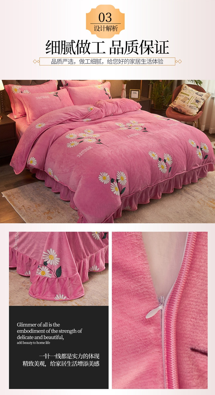 爱洛牛奶绒宝宝绒水晶绒法莱绒金貂绒四件套 菊花粉色