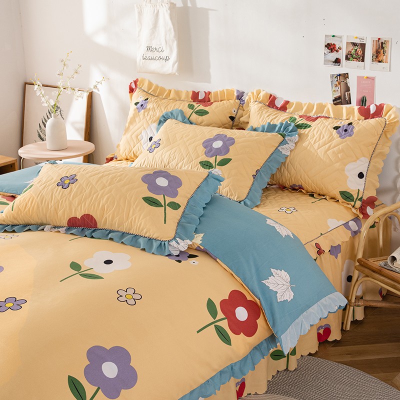 纽缦 2020新款加厚磨毛夹棉床裙款四件套 春风里