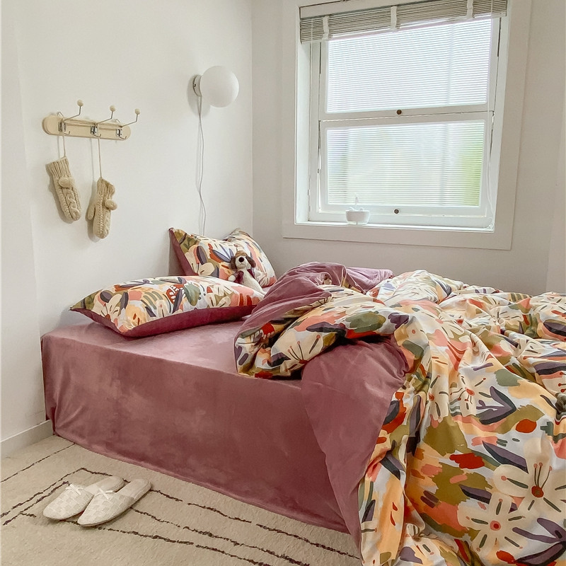 棉眠 2020新品棉加绒A版纯棉B版水晶绒四件套 光影棉加绒