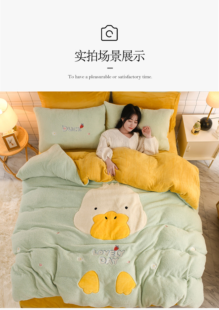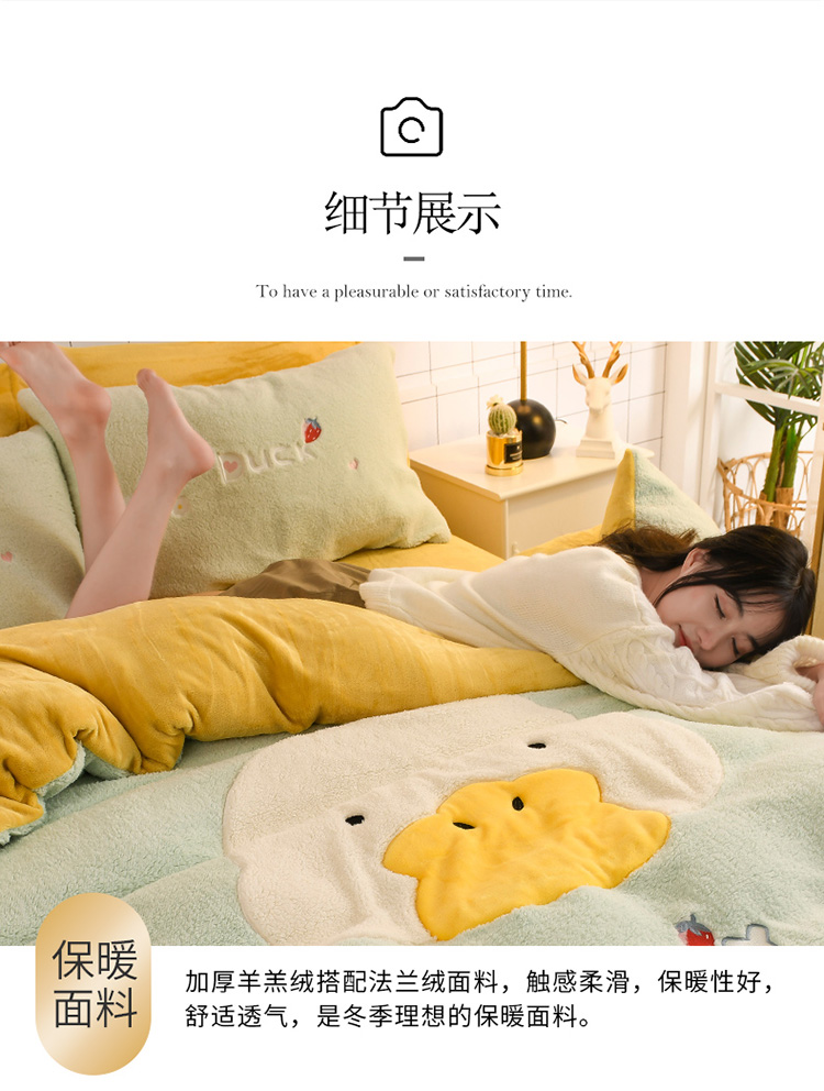 (总)朗莎家纺 2020新款羊羔绒法兰绒四件套,淘气鸭-粉,淘气鸭-湖蓝,淘气鸭-墨绿,天使熊-宾利蓝,天使熊-湖蓝,玩具熊-湖蓝