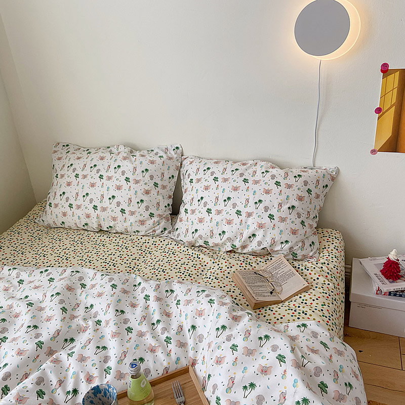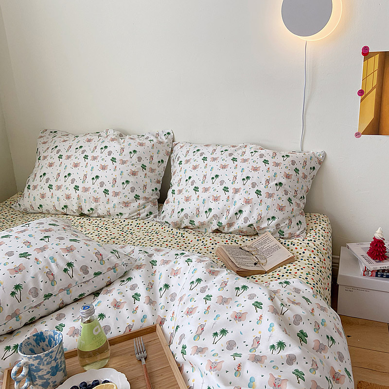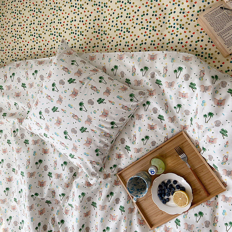 (总)尺素 全棉40支喷气13372韩国ins设计师四件套,花舞,篱落粉,篱落黄,落英,派对,童趣,涂鸦,小粉兔,雪地熊