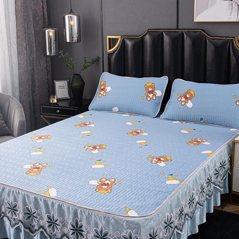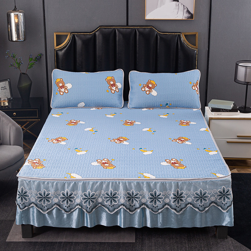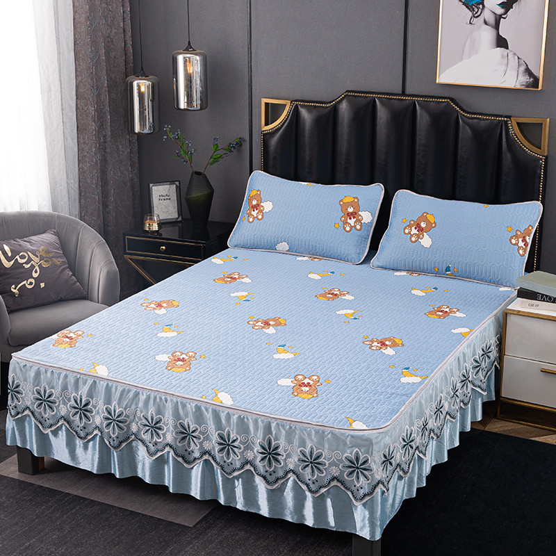 商品名称:纽缦家纺 2021新款凉感丝乳胶凉席可拆卸床裙款三件套 呆萌伙伴兰