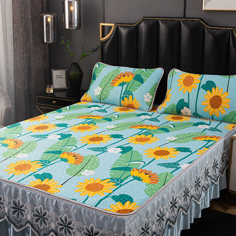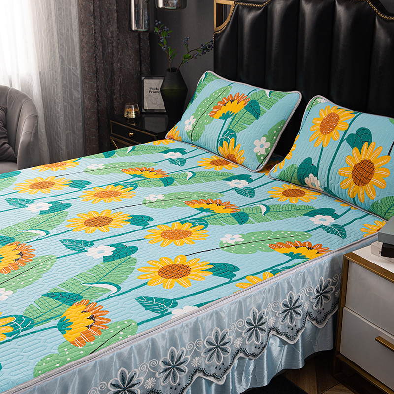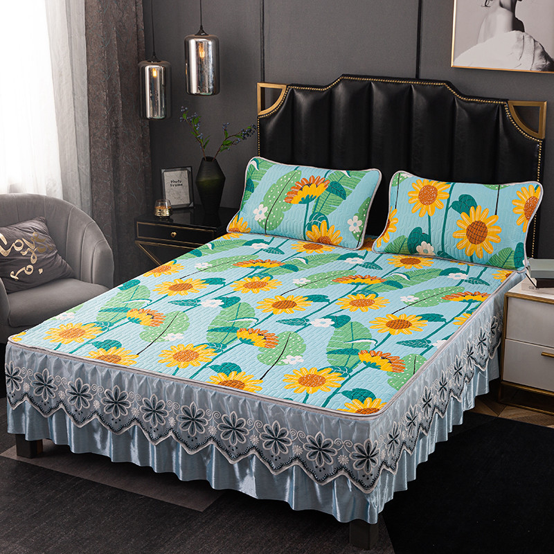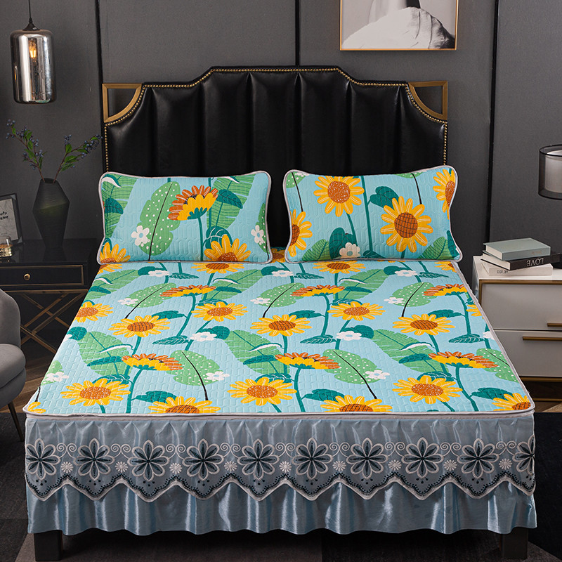 商品名称:纽缦家纺 2021新款凉感丝乳胶凉席可拆卸床裙款三件套 向日花开-绿