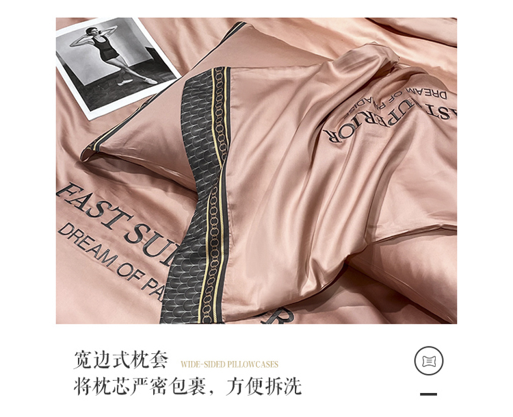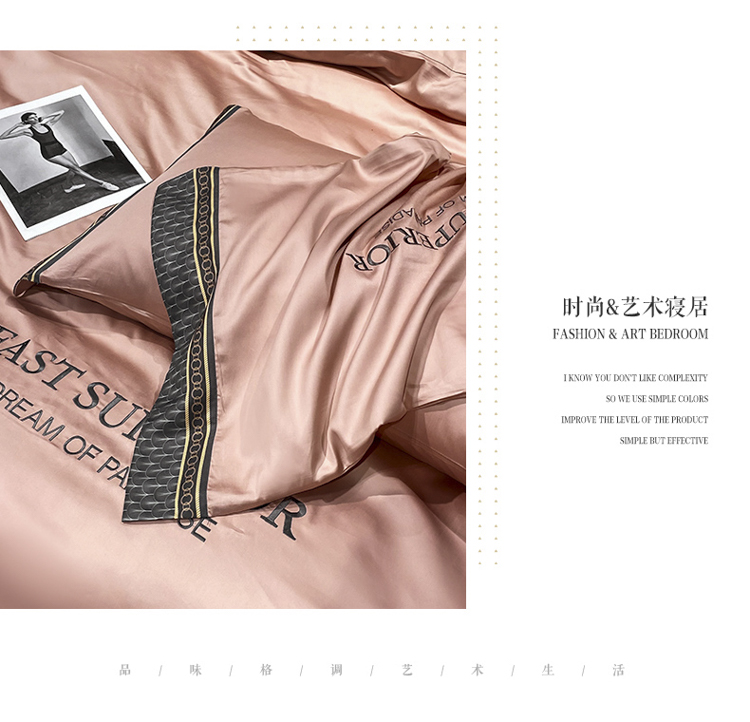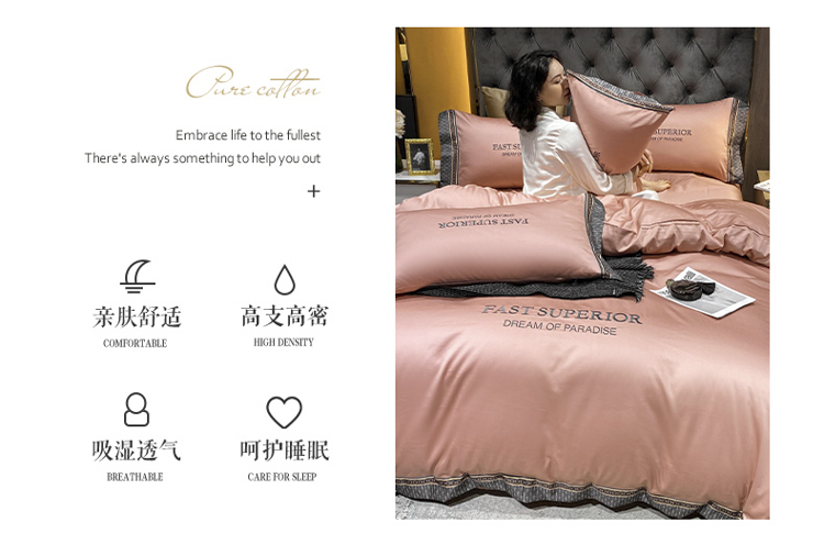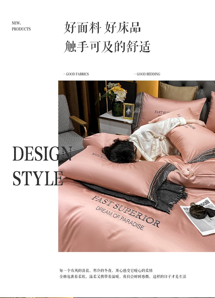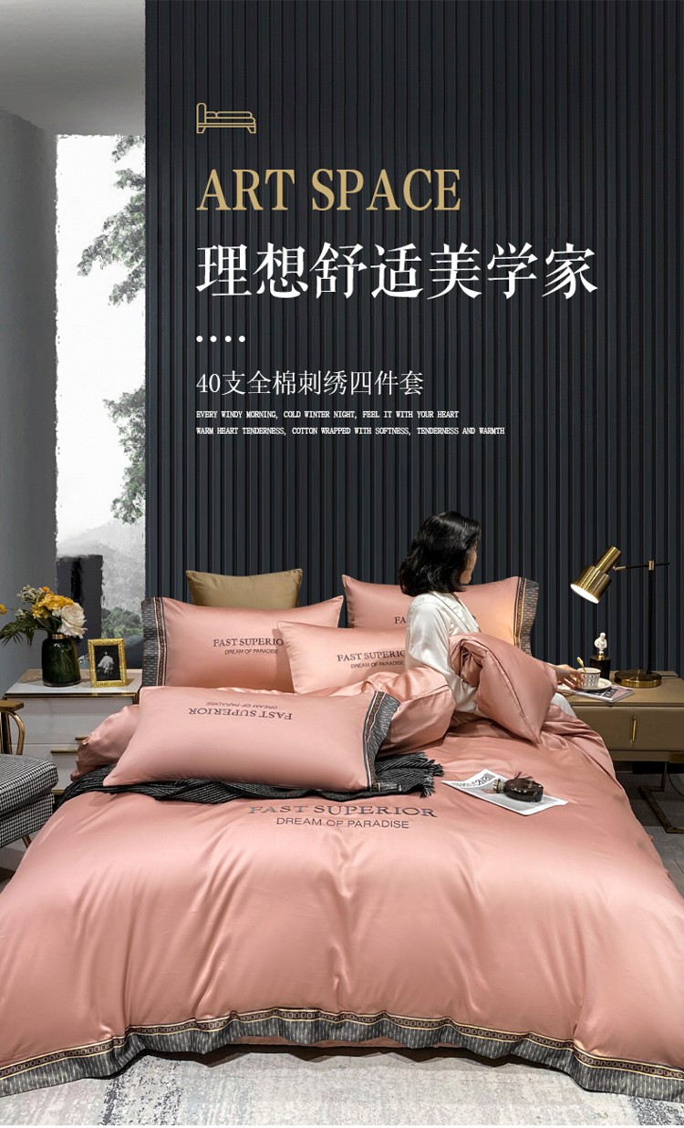 ab家纺 2021新款40s全棉刺绣四件套浅豆沙