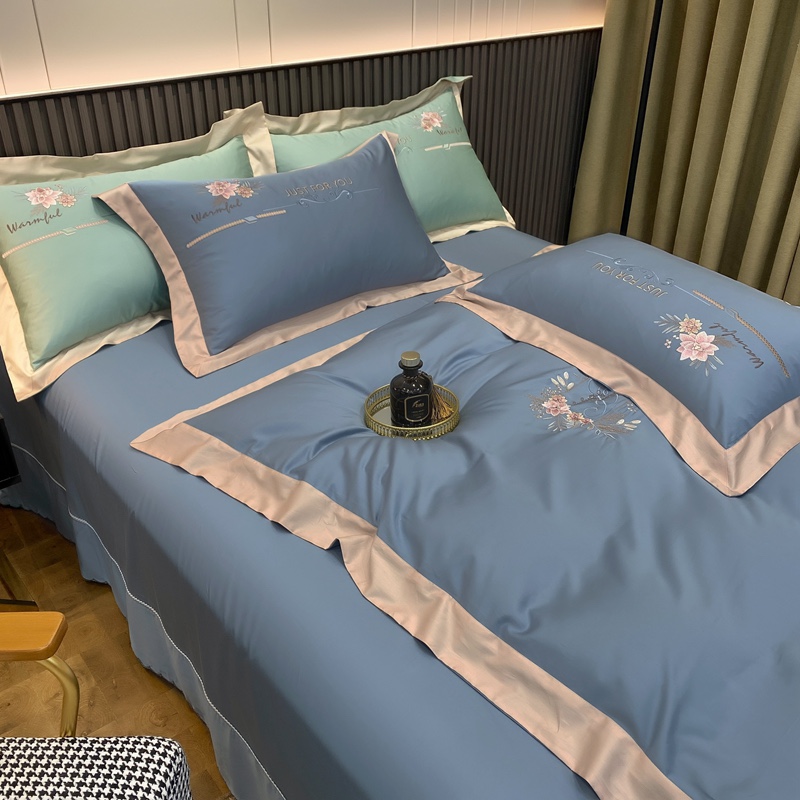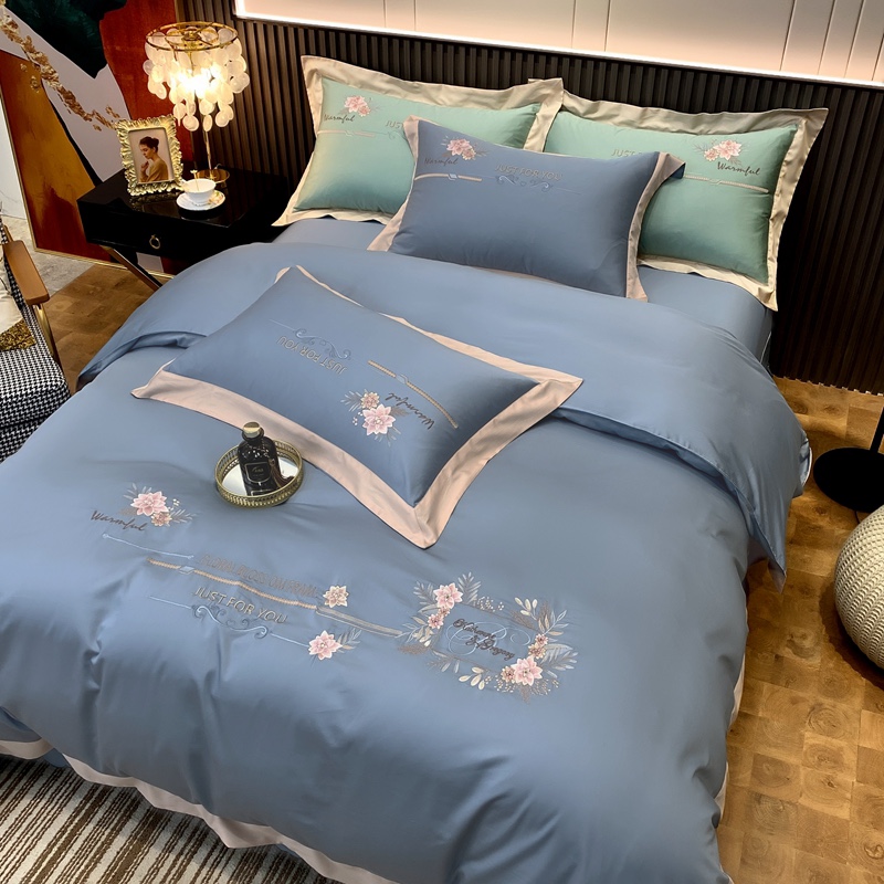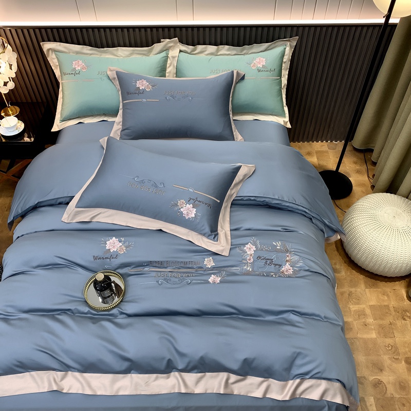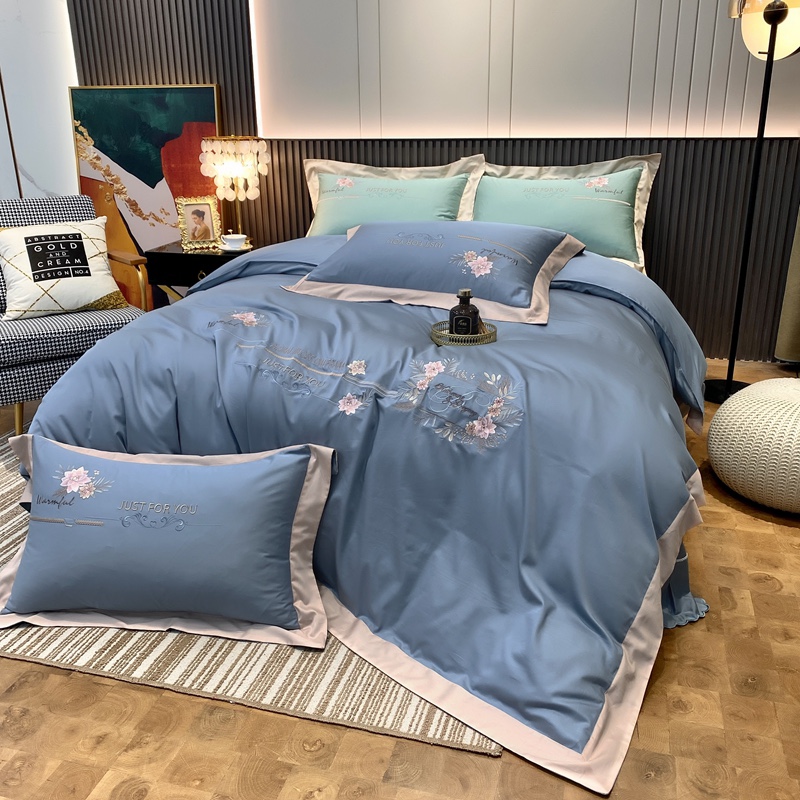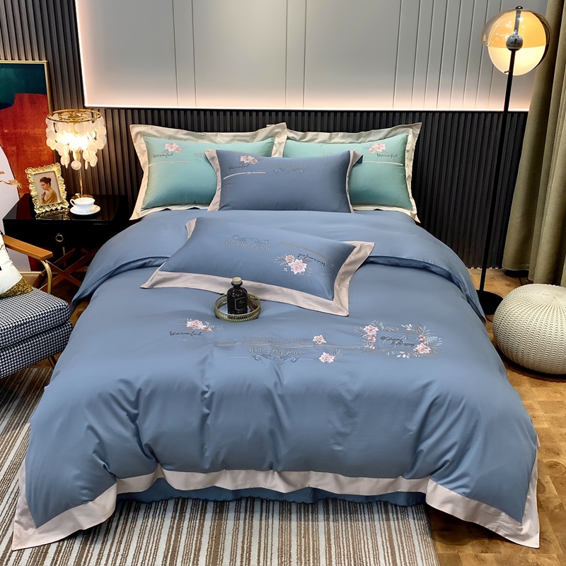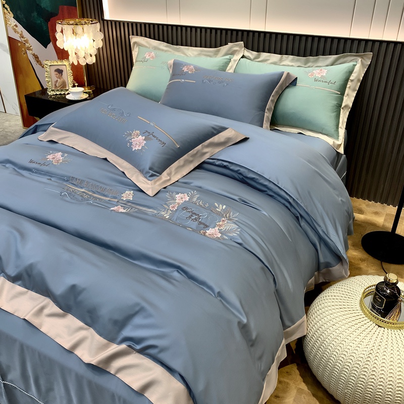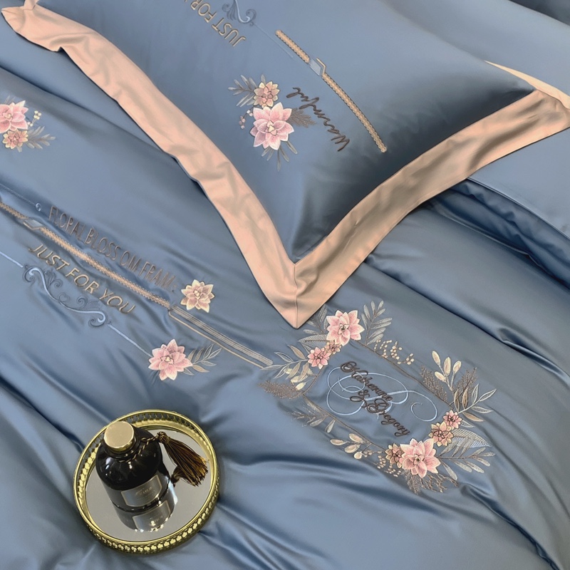 2021新款100支天丝棉刺绣四件套蓝调之夜 烟熏兰