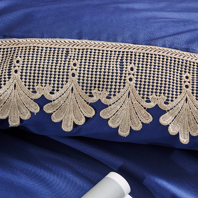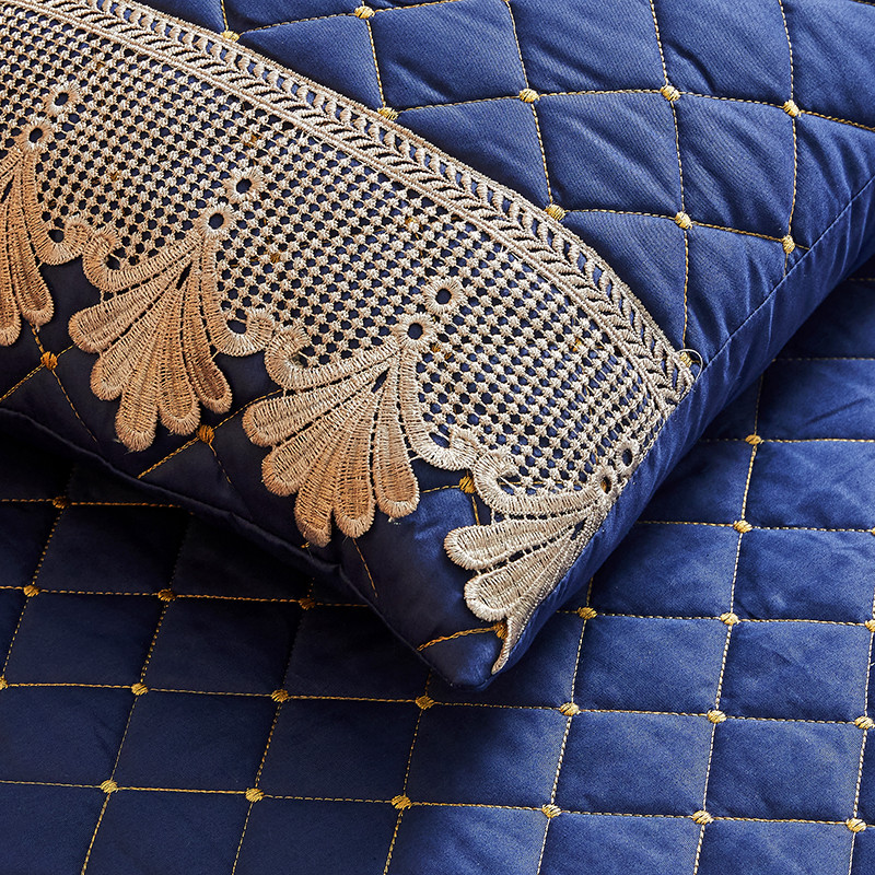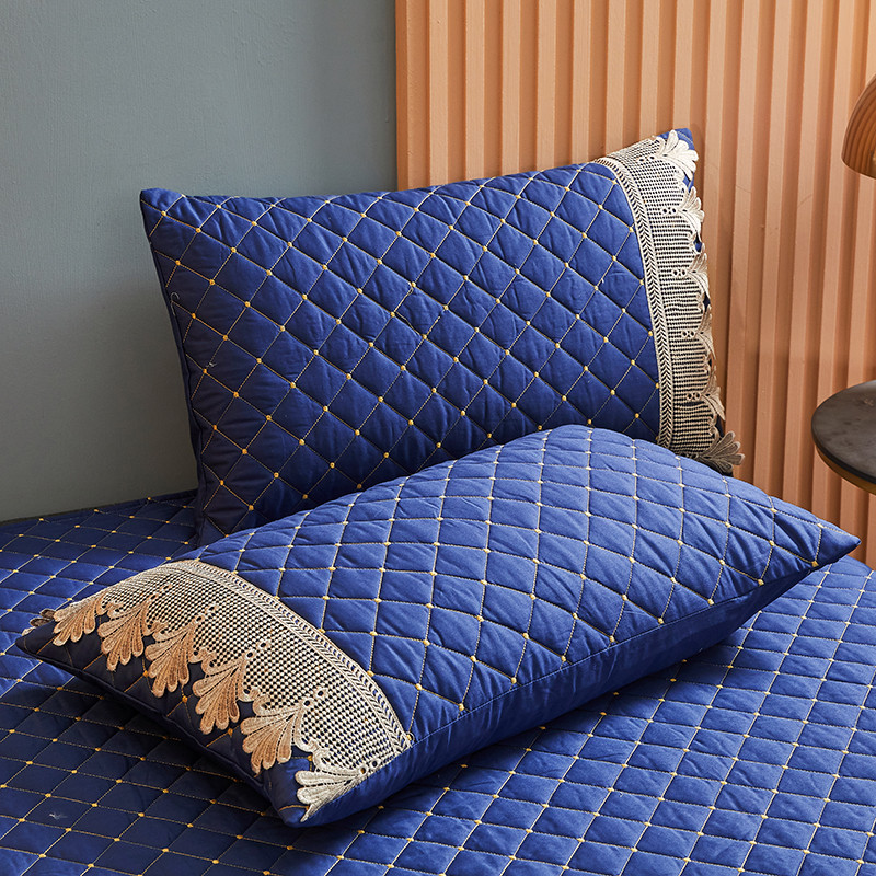 十个点家纺 2021新款水溶边夹棉单品枕套 宝蓝一对