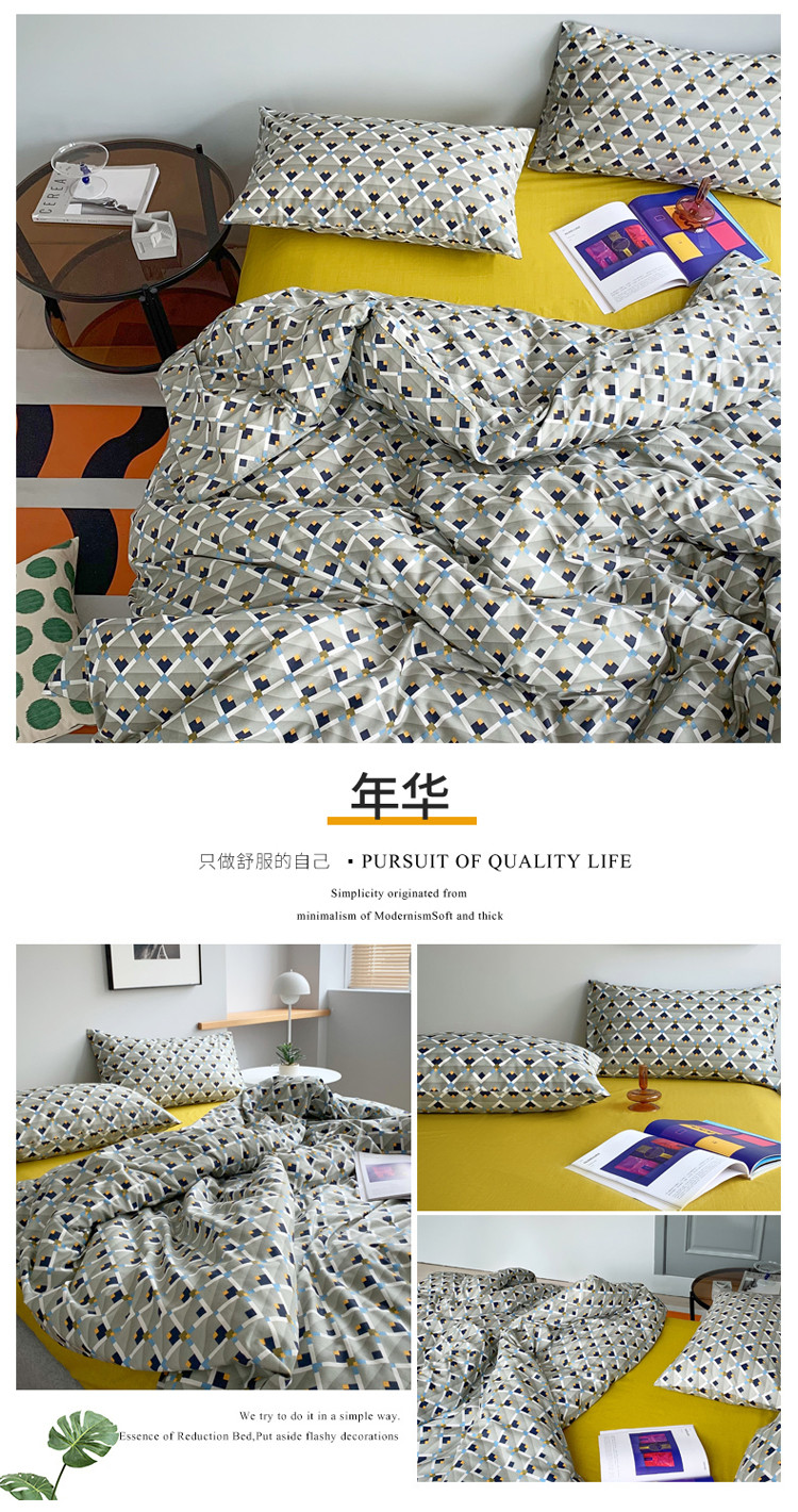 (总)怡家居 2025新款全棉纯棉磨毛绣花四件套-拼接款,格子小兔,可可腊肠,苹果小猫,曲奇饼干,五彩小煤球-咖,五彩小煤球-蓝