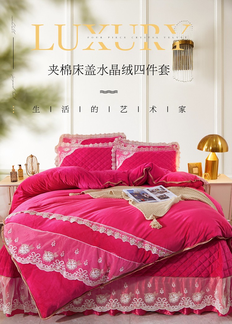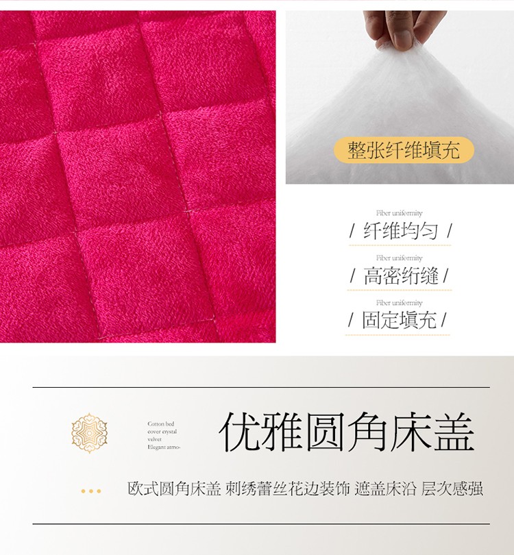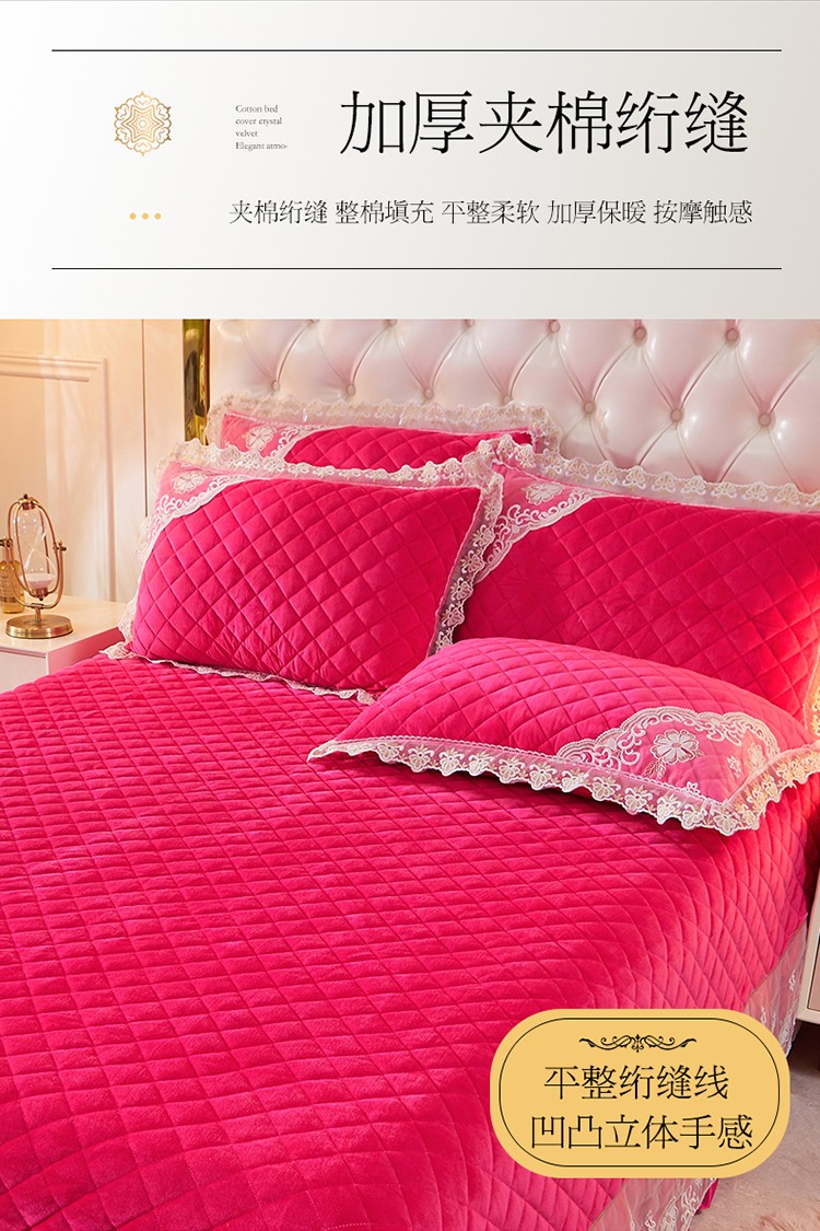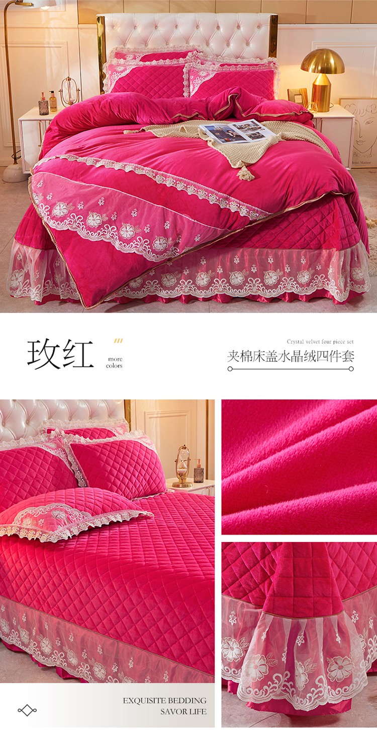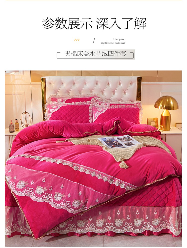 商品名称:网红馆 2025新款曼妮夹棉床盖水晶绒四件套 玫红