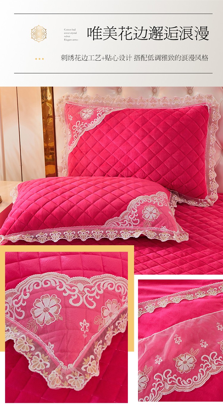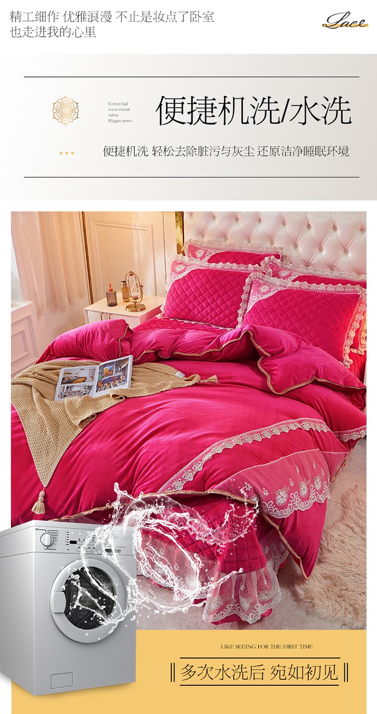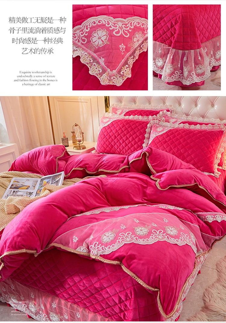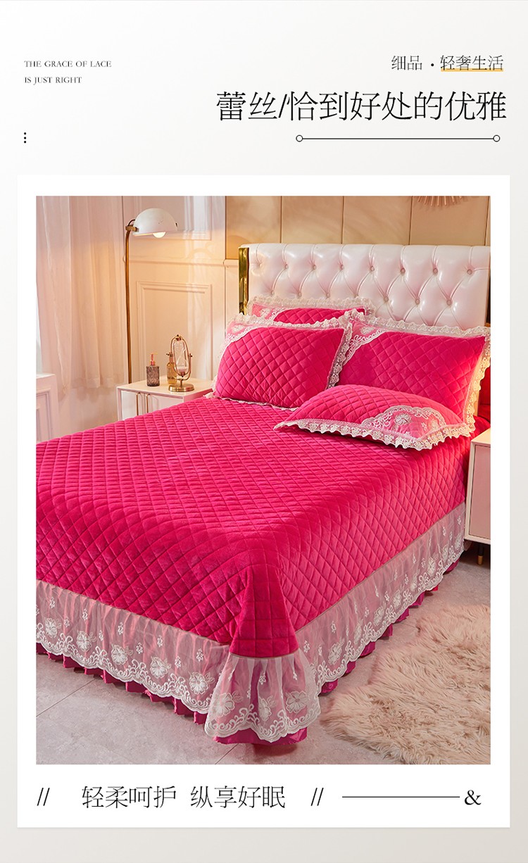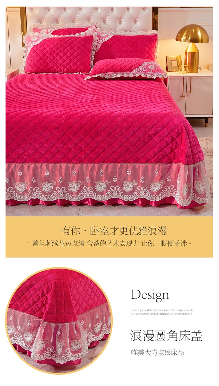 商品名称:网红馆 2025新款曼妮夹棉床盖水晶绒四件套 玫红