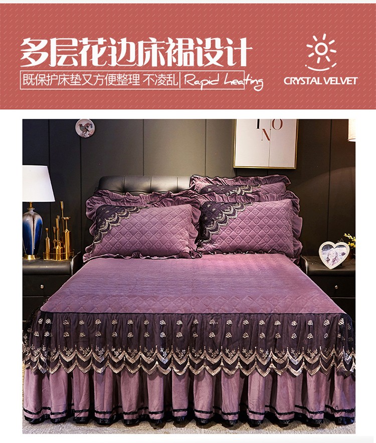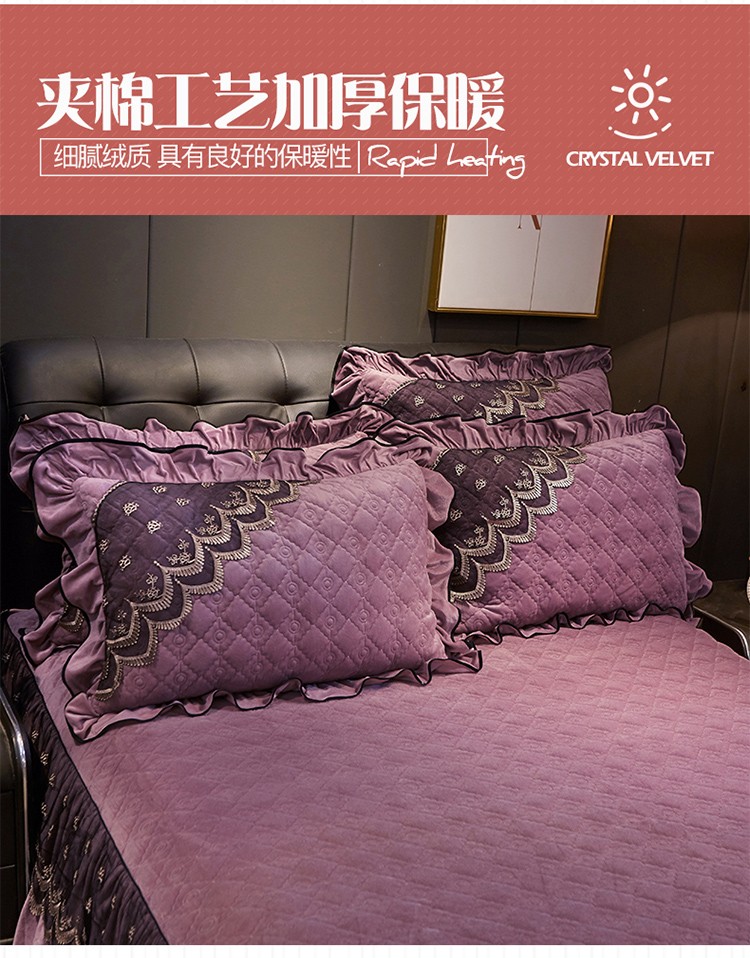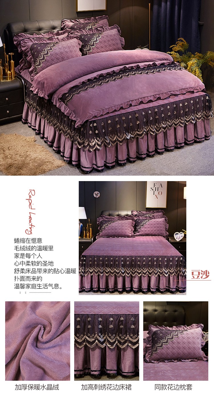 网红馆 2025新款玲珑时尚水晶绒夹棉床裙四件套 豆沙