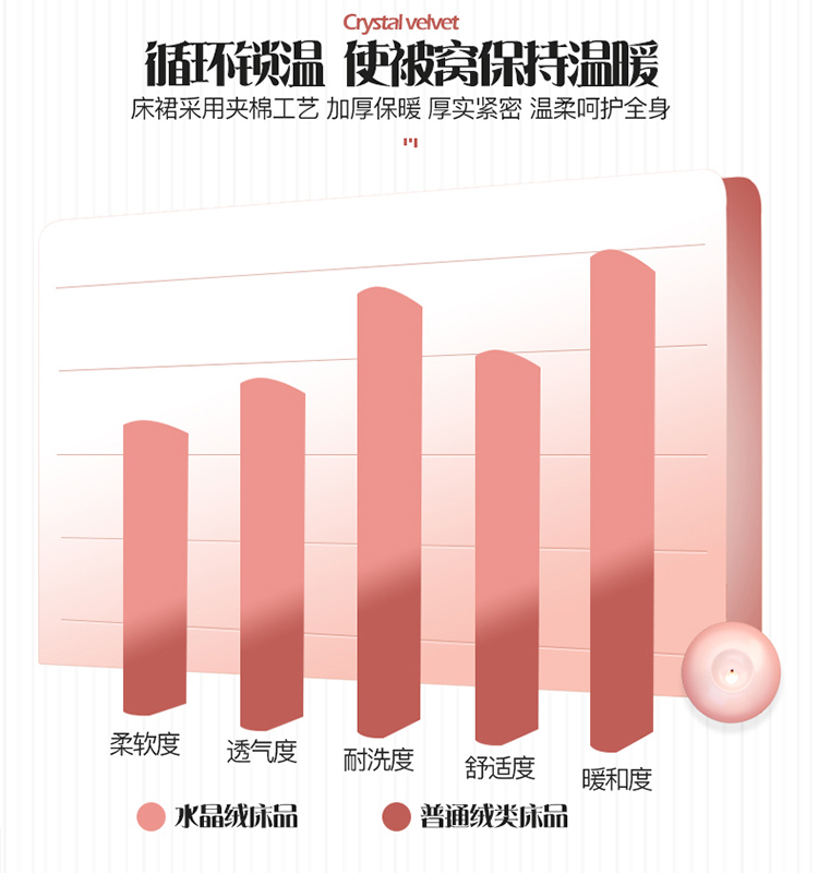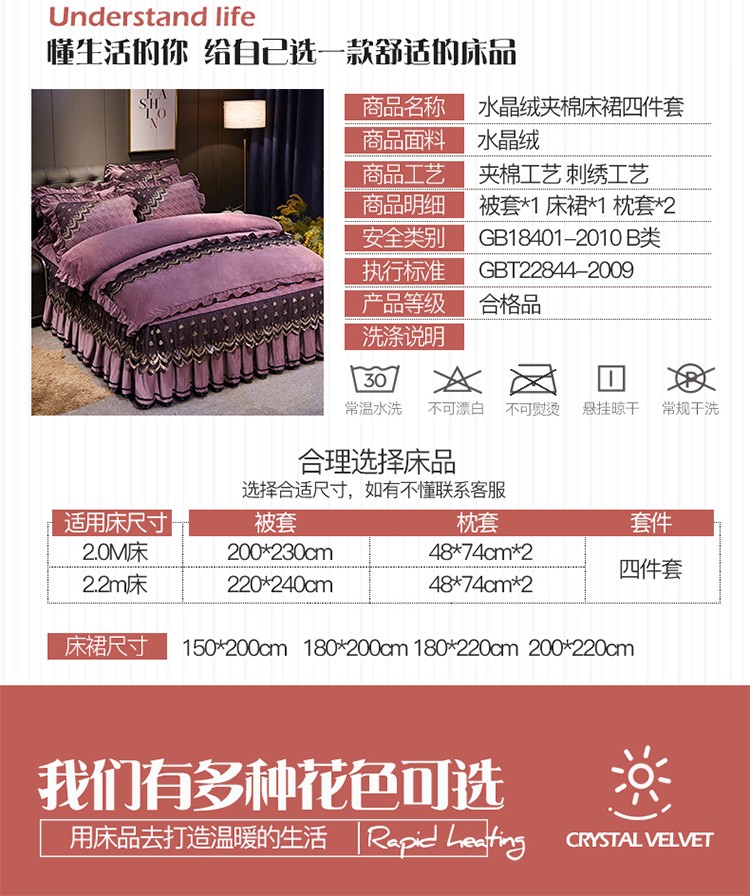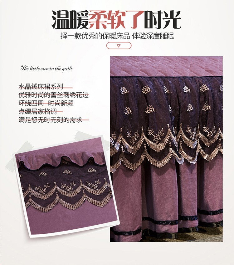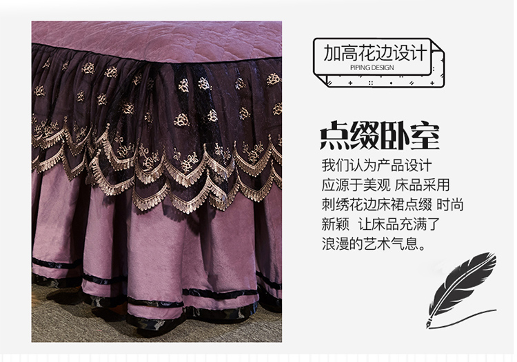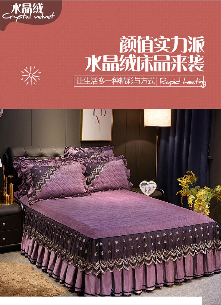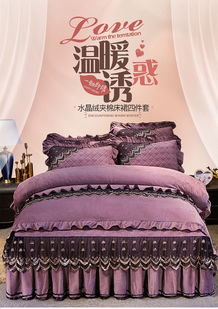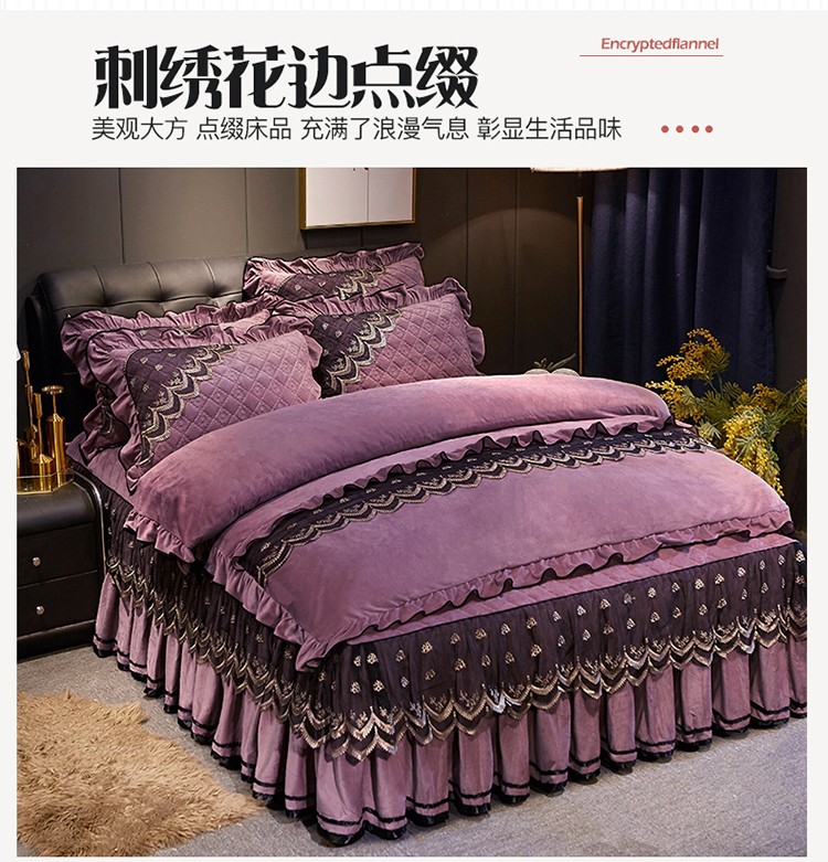 商品名称:网红馆 2025新款玲珑时尚水晶绒夹棉床裙四件套 豆沙